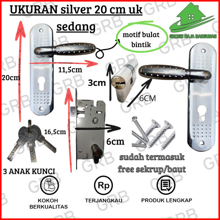 Kunci Pintu Door Handle Set Lengkap Pegangan Pintu Slot Kunci Set Komplit Tinggal Pasang