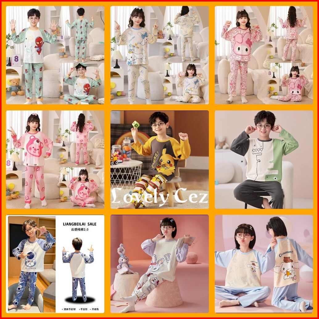 Baju Tidur Anak Karakter Piyama Anak Lengan Panjang Celana Panjang Umur 4-13thn