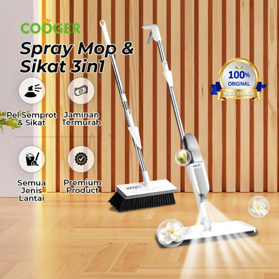 COOGER Alat Pel Semprot Lantai Dengan Water Tank Praktis Dan Sikat 3in1 Brush Gagang panjang Multifunction
