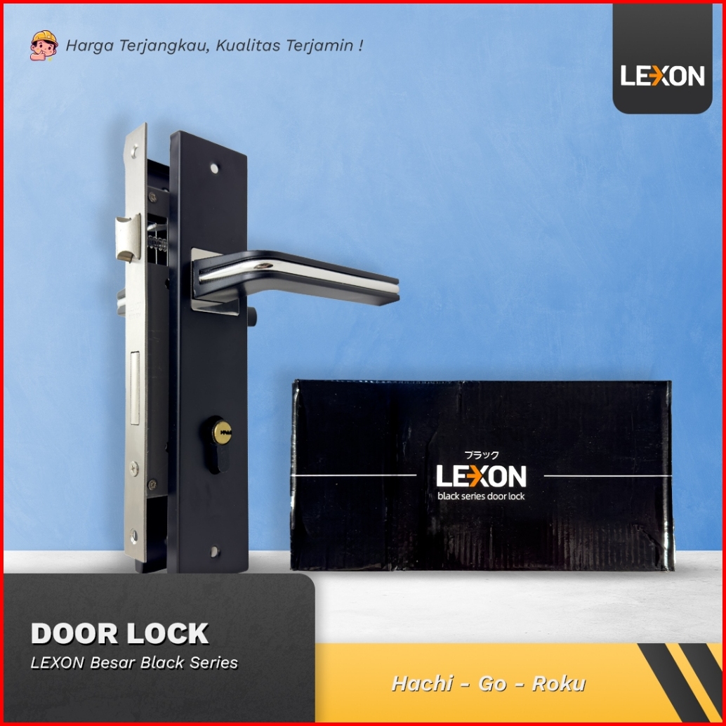 Oliq Lexon Kunci Pintu Black Hitam L25cm Variasi Chrome Gagang Handle Pintu Set Rumahan