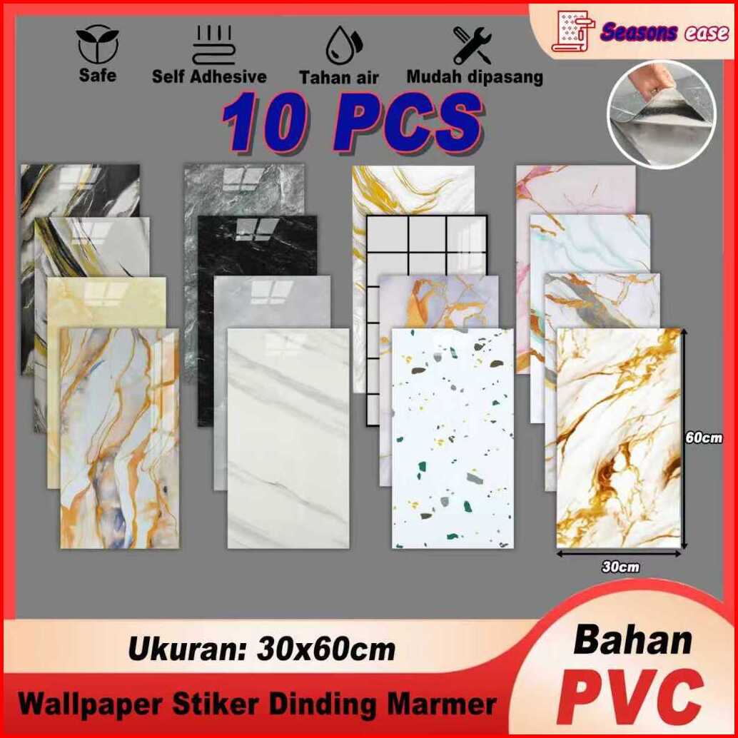 Seasons Ease - Wallpaper Dinding Vinyl Motif Marmer Granit 30x60cm Paket 10 Pcs - Glossy Aesthetic Tahan Air Cocok Untuk
