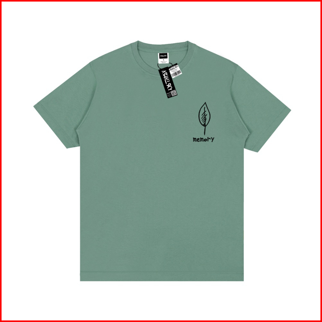 Ashall.sky Baju Kaos Distro Dewasa Sage Green Memory Simple Logo Pria Wanita Lengan Pendek Katun Combet 30s