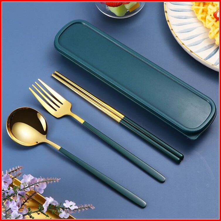 Cutlery Set Alat Makan Korea Stainless Steel 410 Box Sendok Garpu Sumpit Oval 4in1 Portable