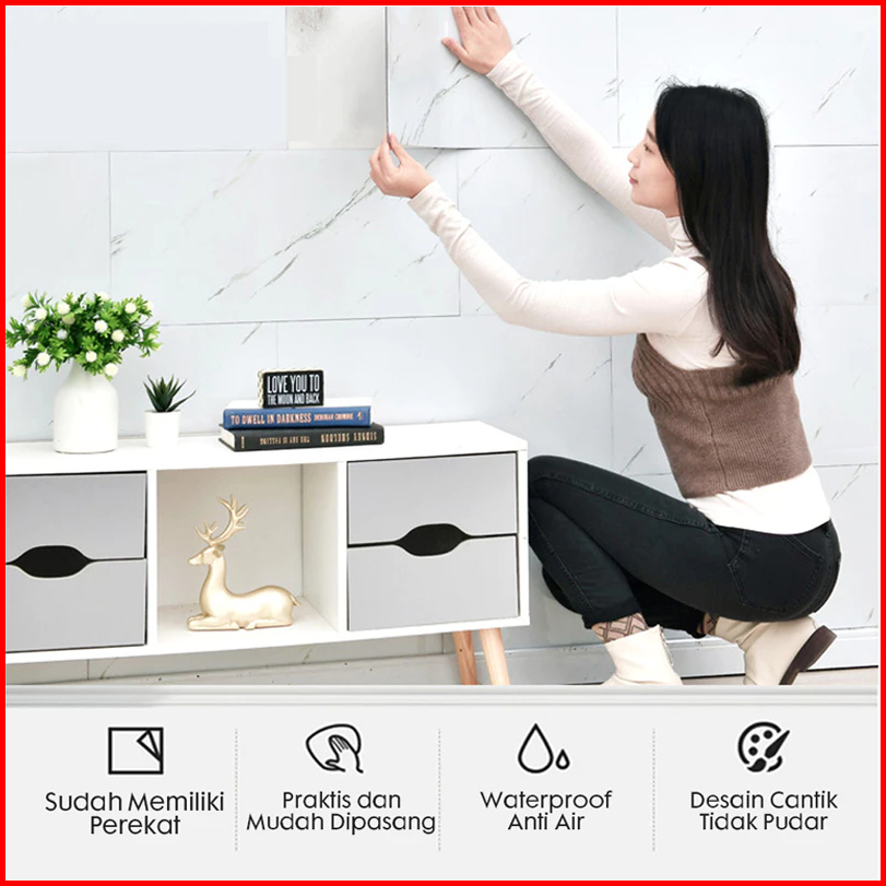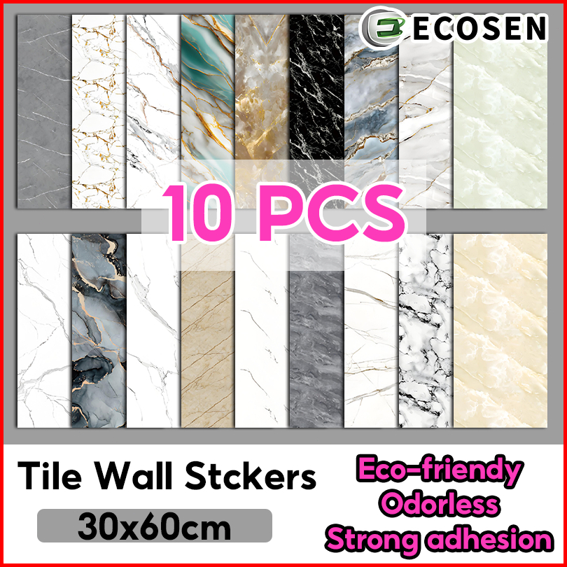 Ecosen Wallpaper Dinding Vinyl Marmer 30x60cm Stiker Keramik Vinyl Lembur 10pcs Wallpaper Dinding Kamar Aesthetic Wallpa