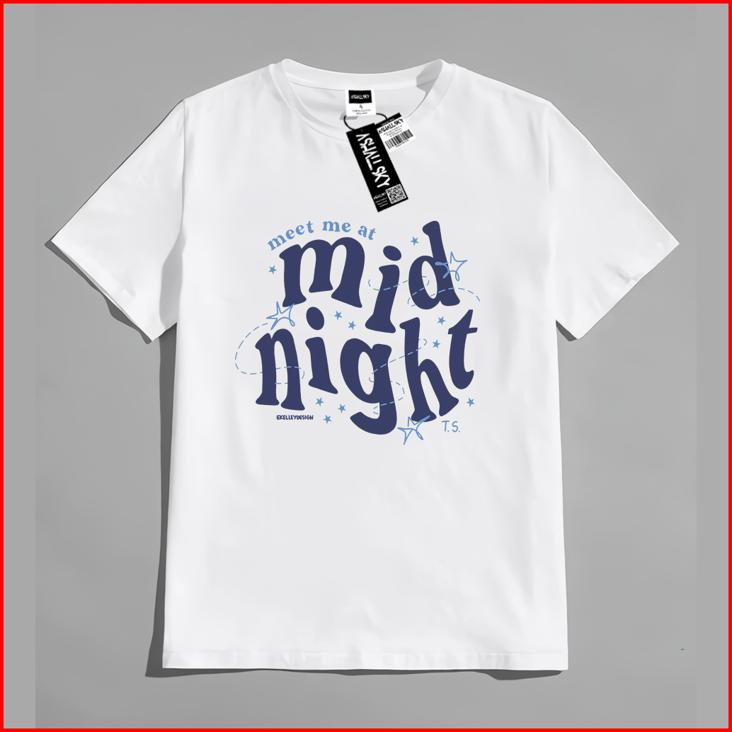 Ashall.sky Kaos Distro Pria Wanita Motif Mid Night Warna Putih Unsiex Oblong Dewasa Katun Combet 30s