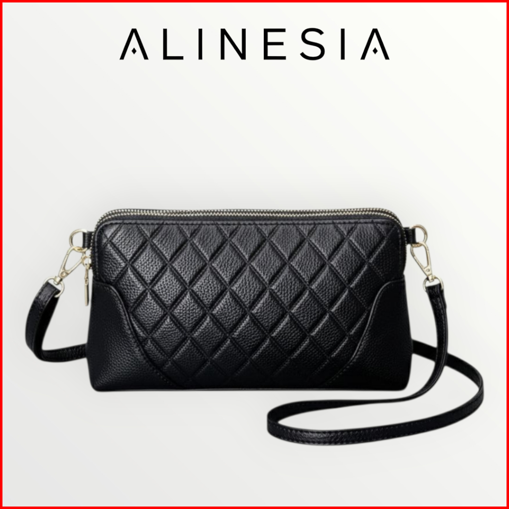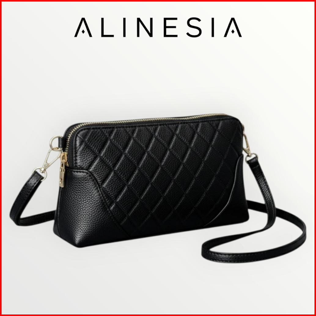 Alinesia - Tas Selempang Wanita 2 Ruang Bahan Kulit Pu Muat Hp Dompet Kosmetik Untuk Santai Pesta