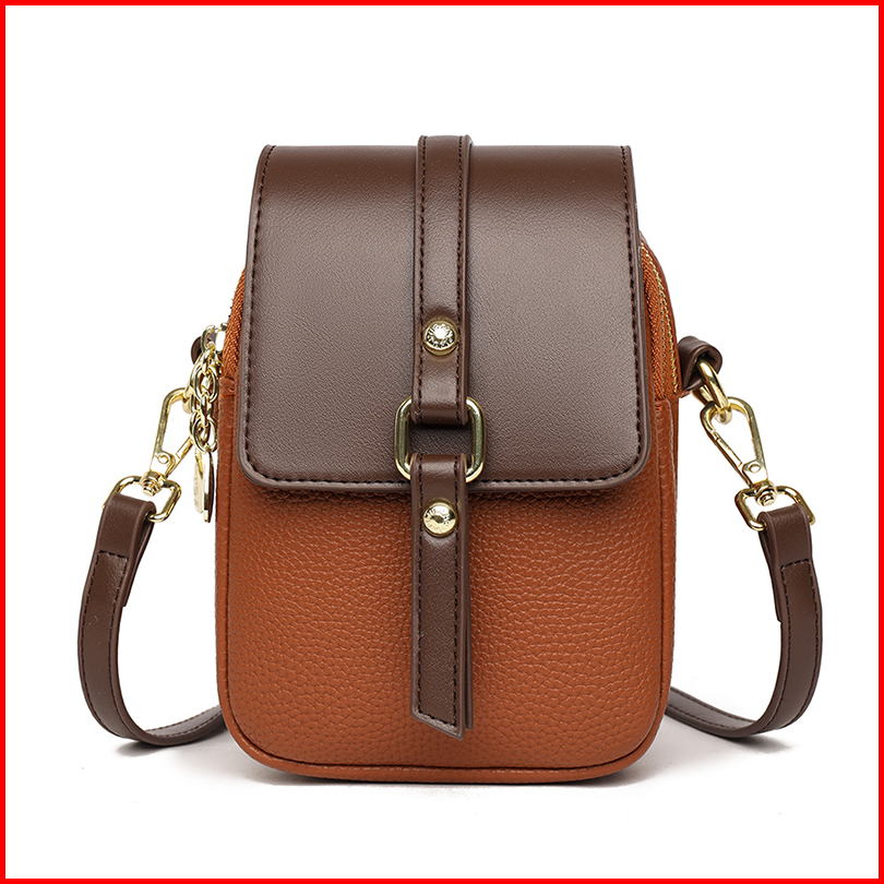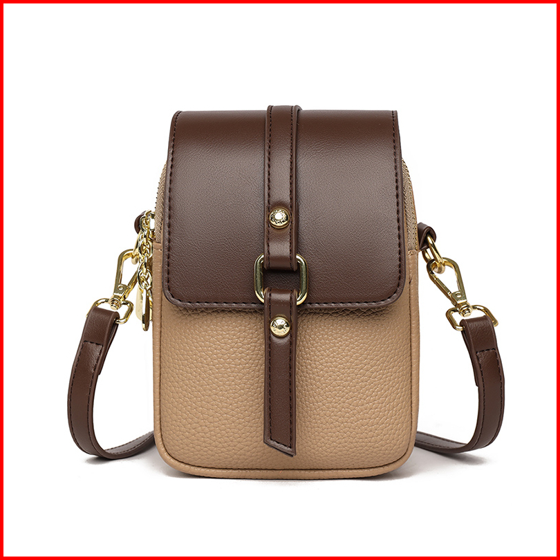 Alinesia - Tas Selempang Handphone Wanita 2 Ruang Tas Kecil Wanita Untuk Pesta Pocket Hp Warna Hitam Moka Bahan Kulit Pu