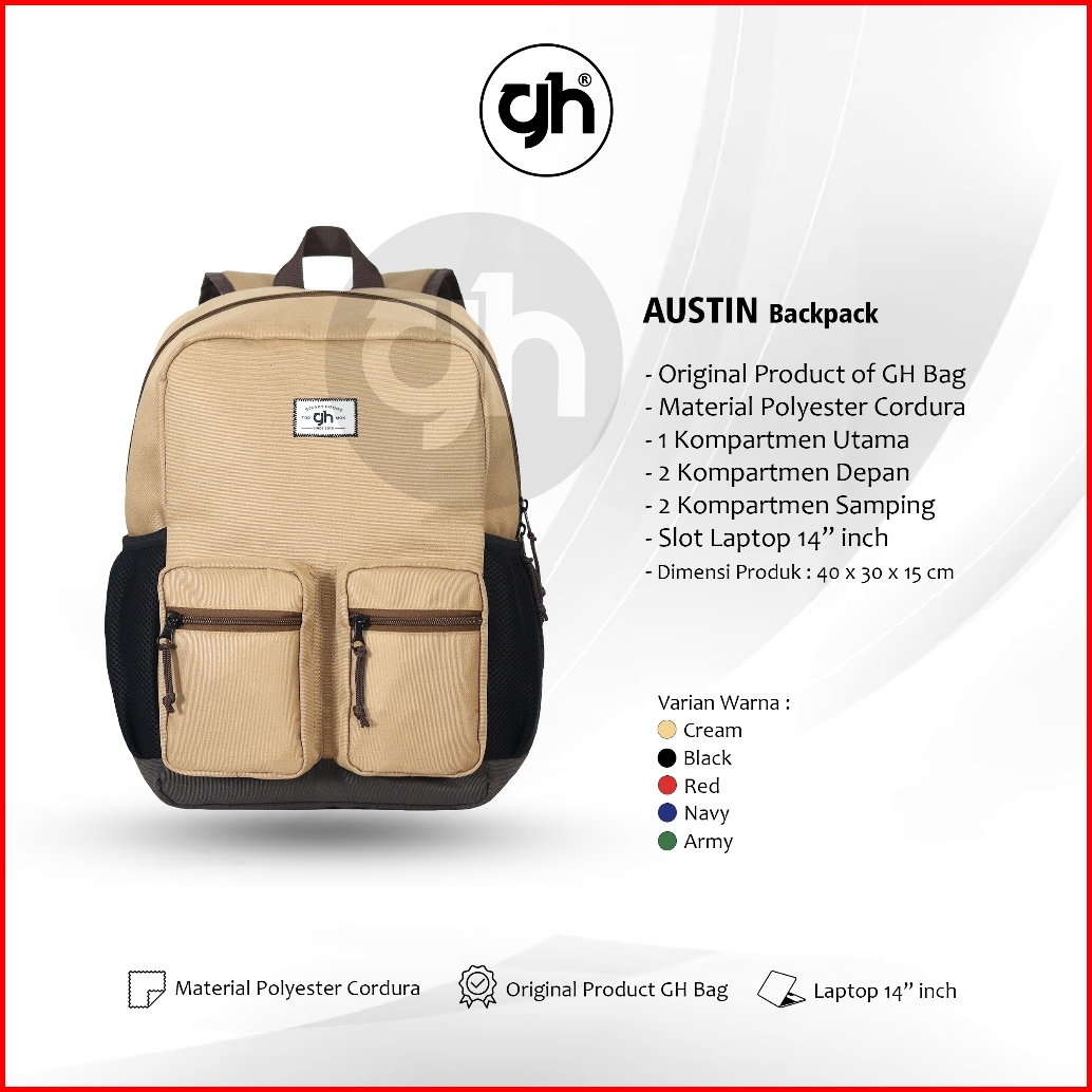Gh-bag Tas Ransel Sekolah Austin Backpack Tas Kuliah Tas Anak Tas Laptop 14 Inch Mulifungsi