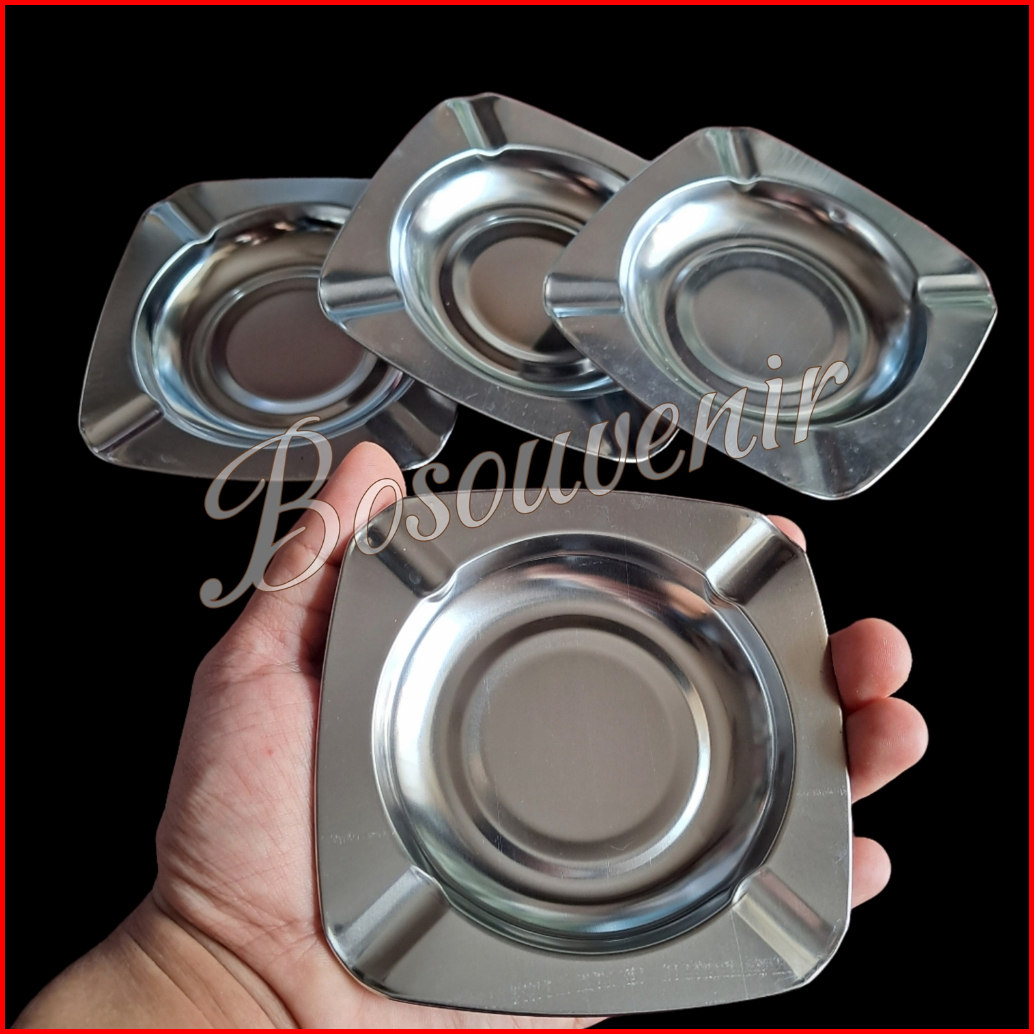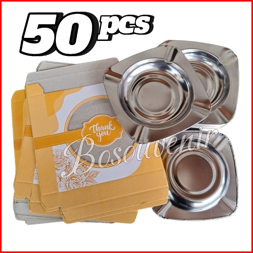 Isi 50 Pcs Souvenir Asbak Stainless Segi4 Box Motif Lembaran