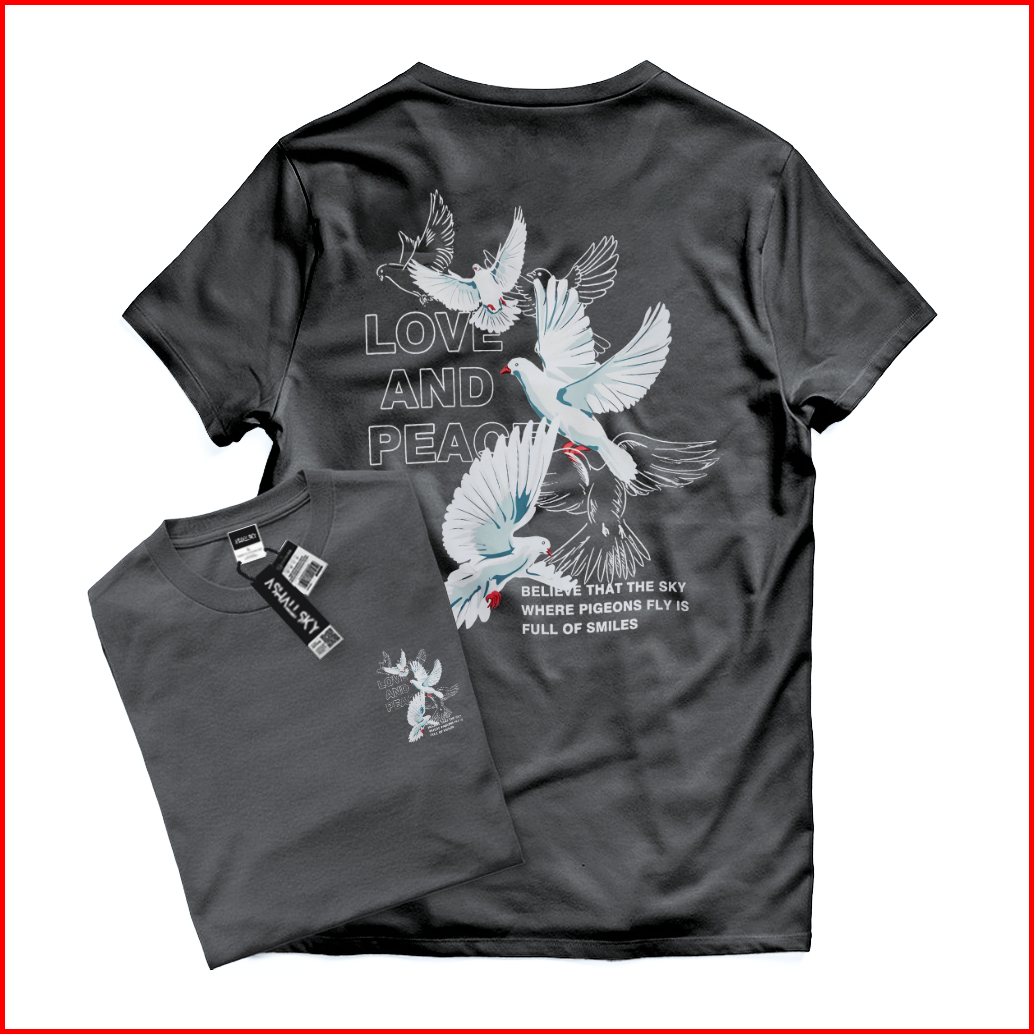 Ashall.sky T-shirt Baju Kaos Pria Distro Lengan Pendek Motif Love Pace Warna Abu Terbaru Katun 30s