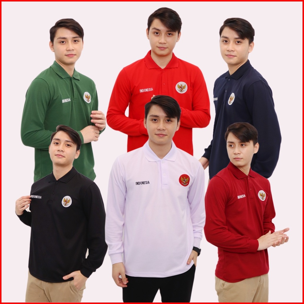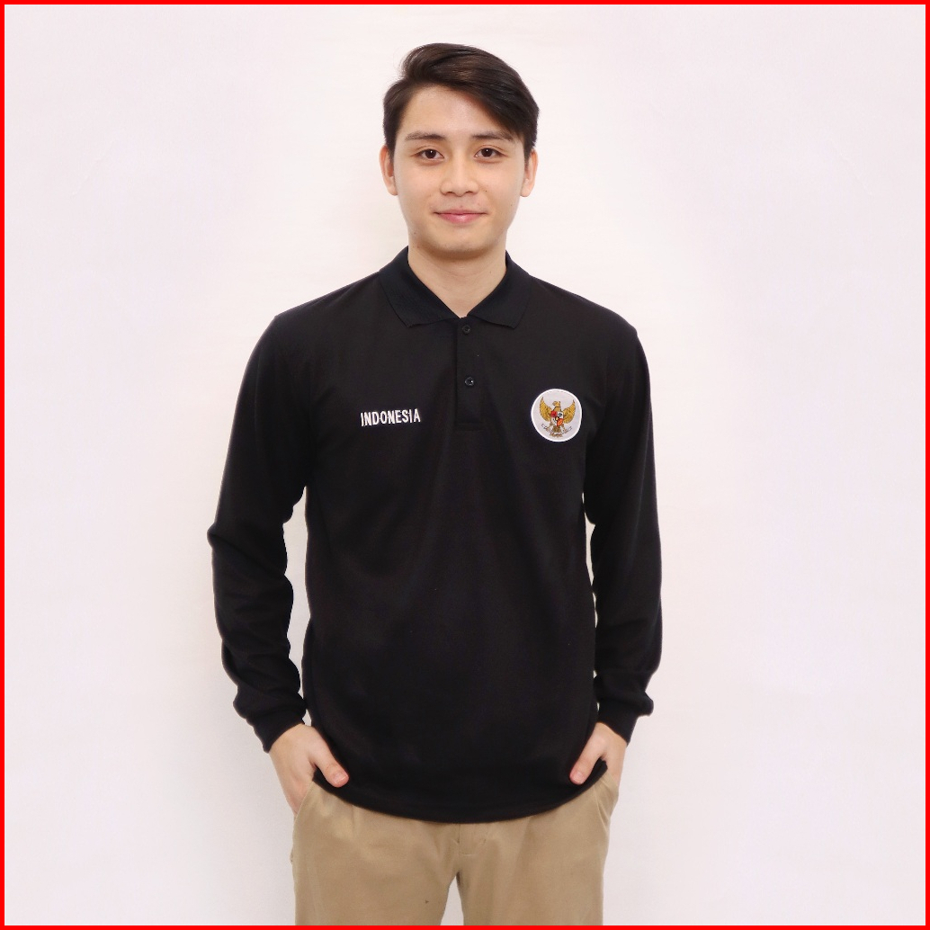 Liso Wear - Kaos Kerah Pria Seragam Lengan Panjang Polo Shirt Distro Logo Bordir Garuda Indonesia
