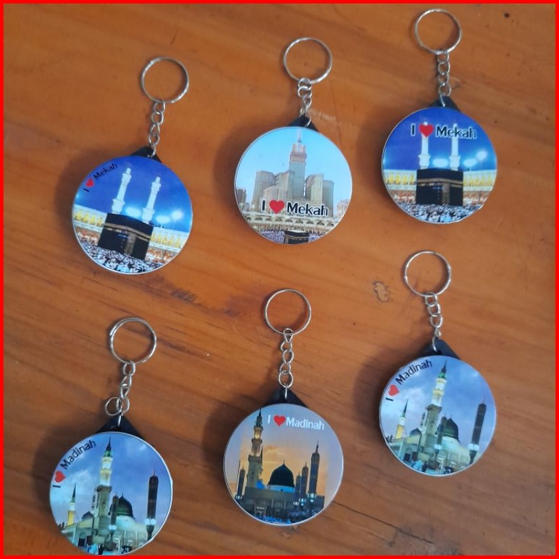 100pcs Souvenir Haji Umroh Gantungan Kunci Bulat Ka Bah Mekah Makkah Madinah Medina