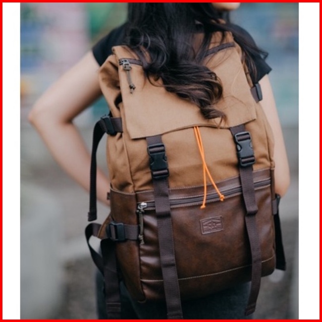 Gh.bag Ransel Sekolah Ransel Foster Wanita New Style Backpack Kanvas Lembut Kombinasi Kulit Sintetis