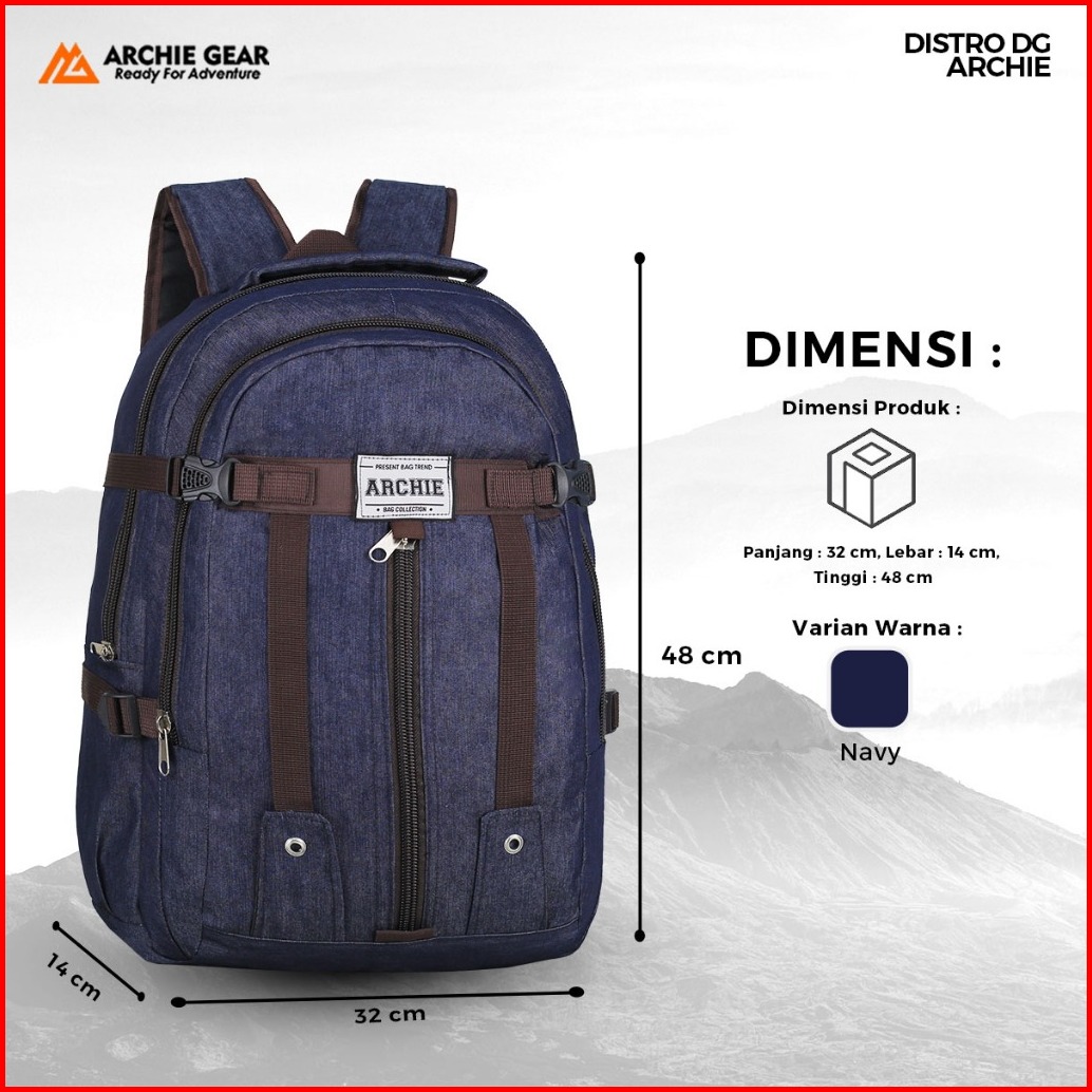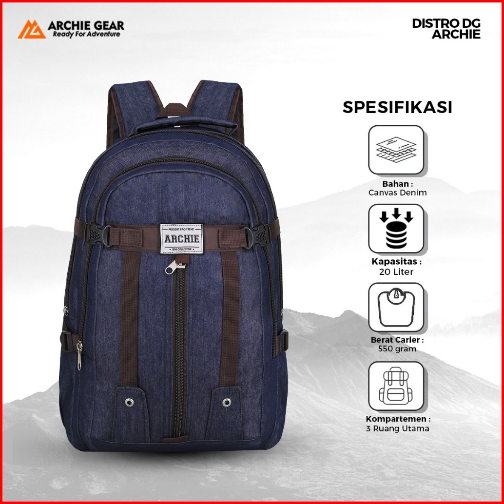 Archie Gear - Tas Ransel Gunung Carier Traveling Outdoor Archie Terra Nova Blue 20 Liter Pulkam Mudik Sekolah