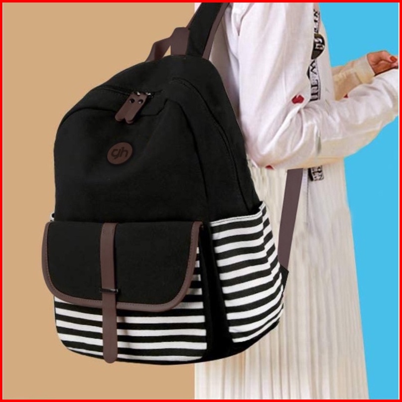 Gh-bag Tas Sekolah Ransel Sekolah Backpack Kanvas Wanita Cocok Untuk Smp Smu Kanvas Stripe Ts