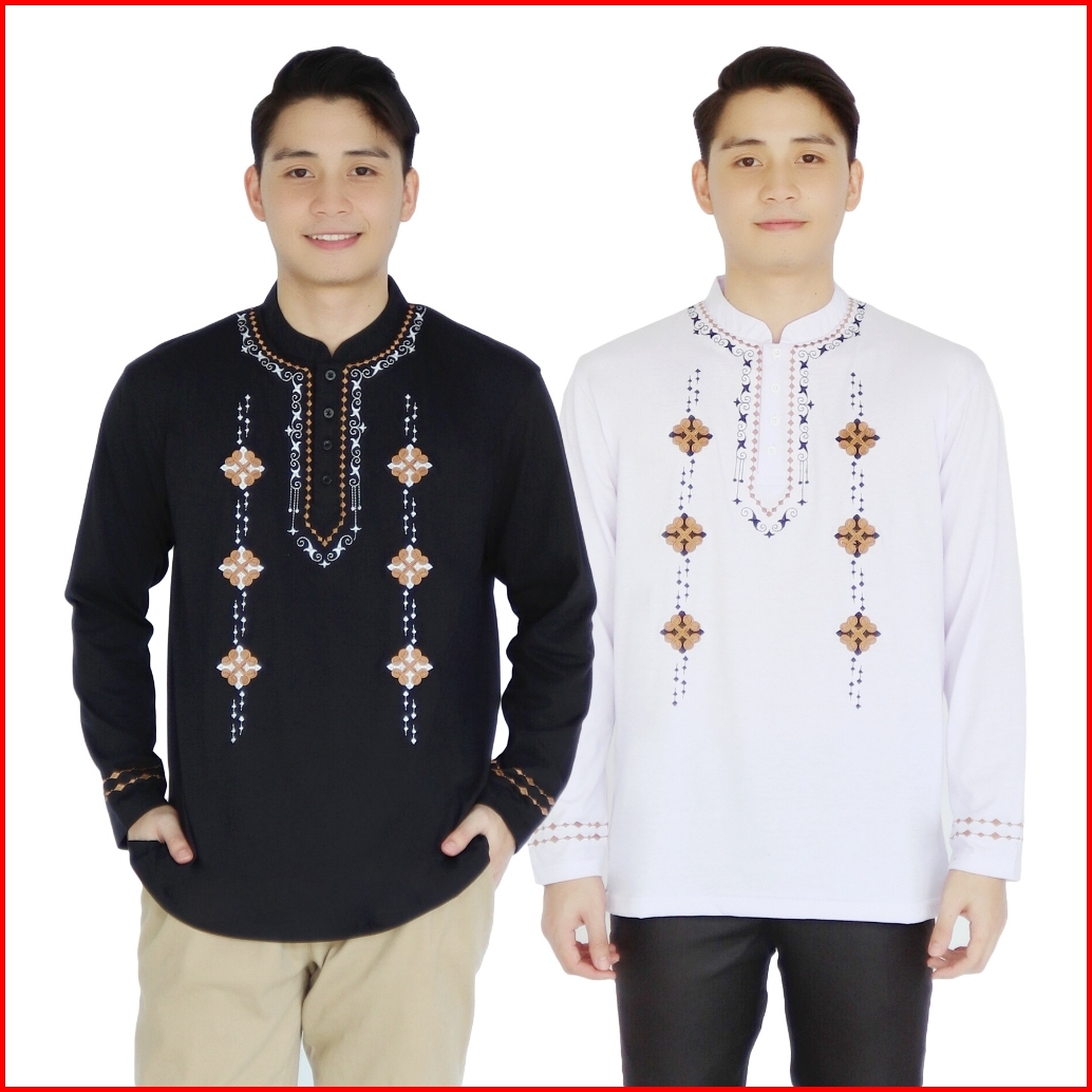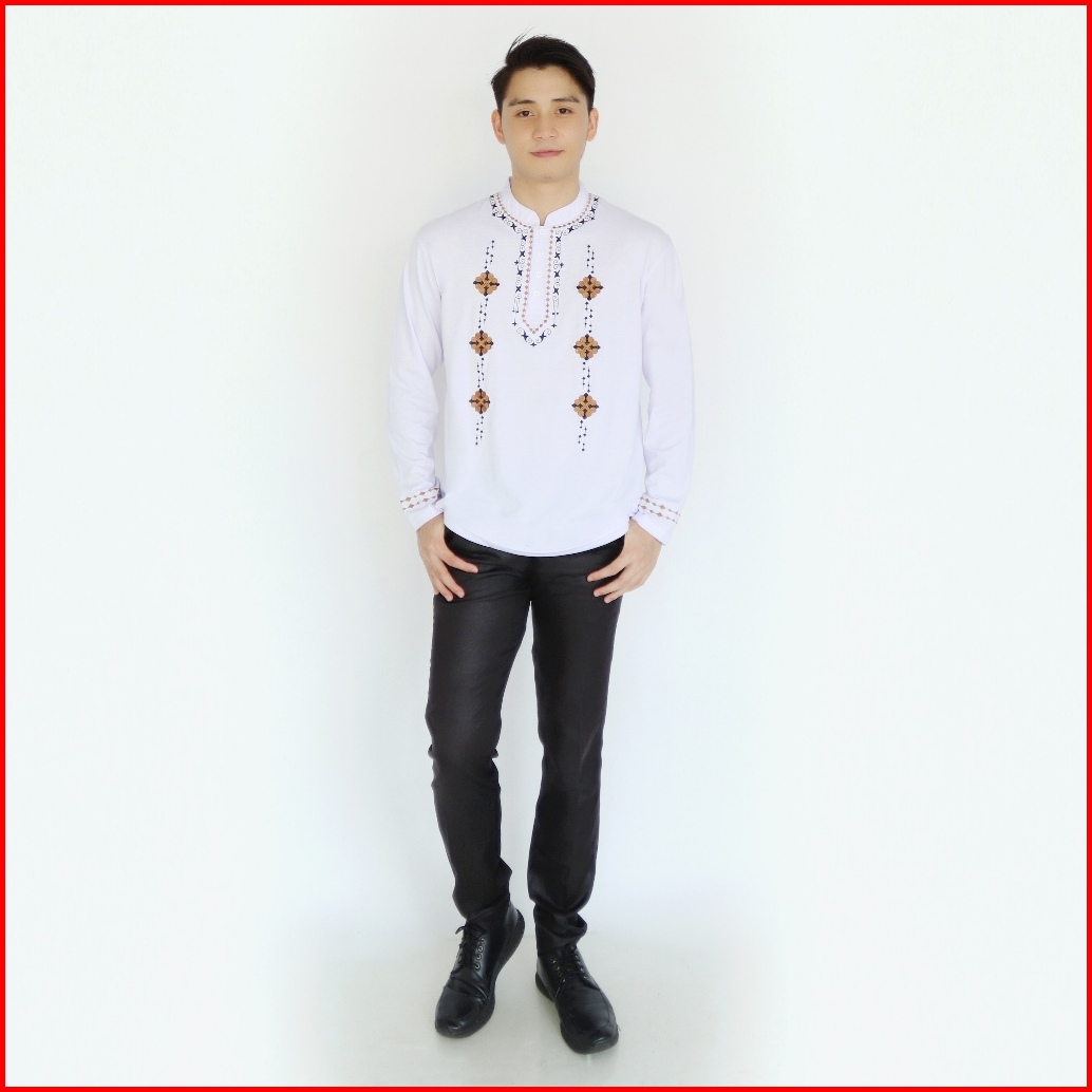 Liso Wear - Baju Kaos Katun Koko Kerah Shanghai Uj Bordir Motif Batik Lengan Panjang