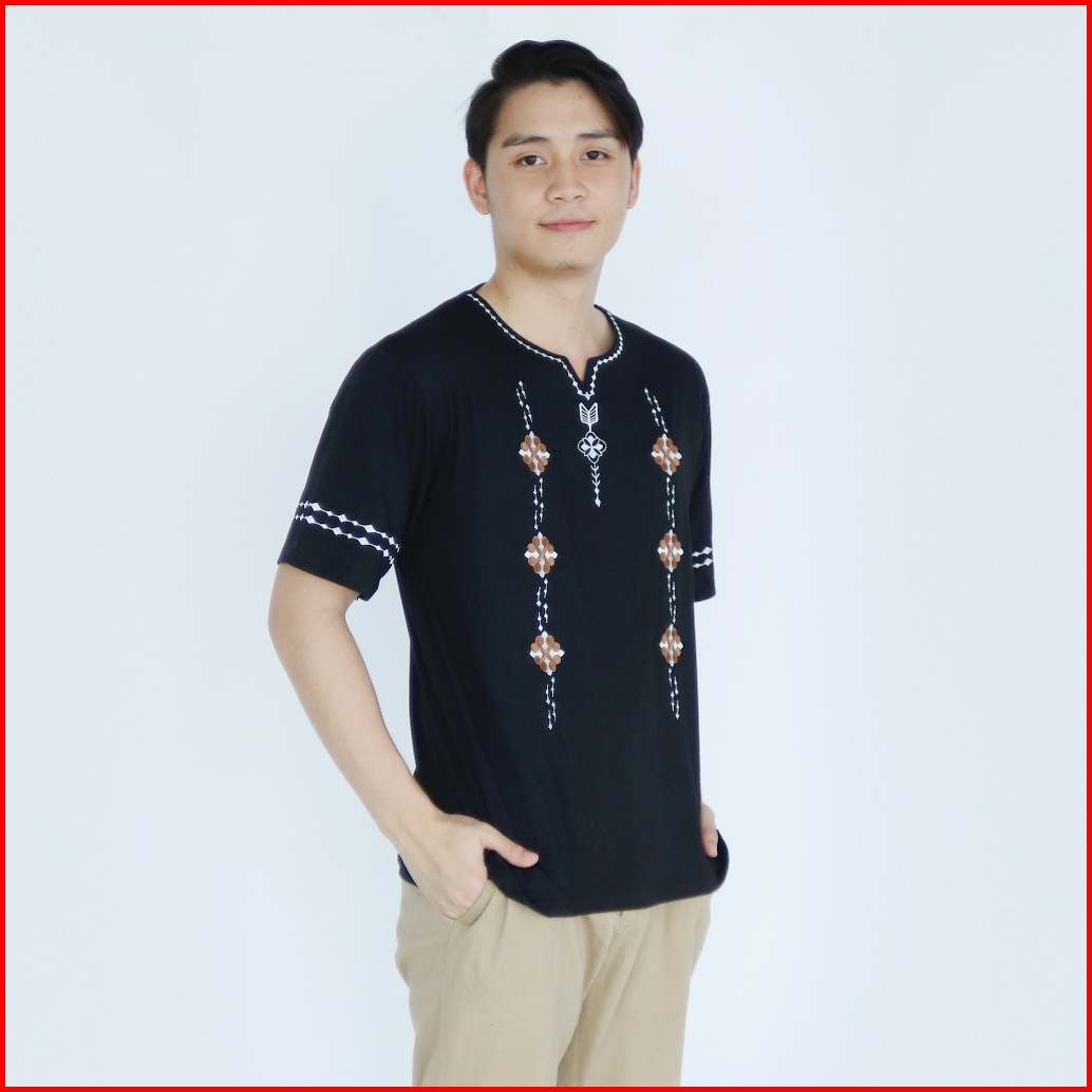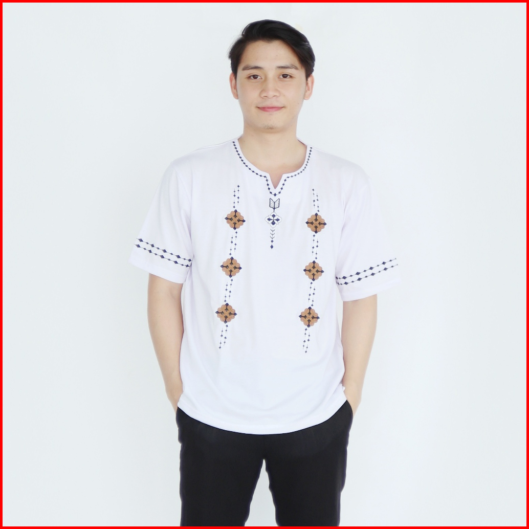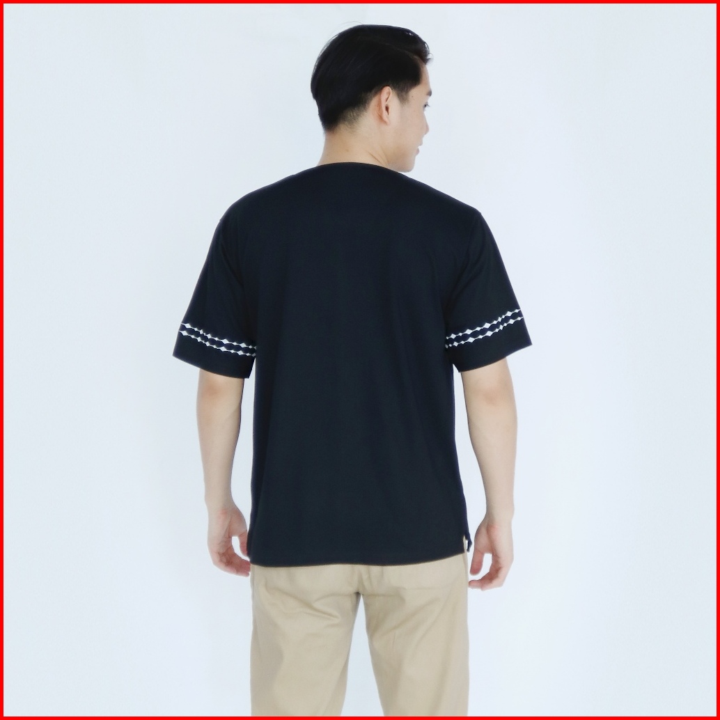 Baju Kaos Muslim Pria Lengan Pendek Baju Koko Uj Bordir Motif Batik Hitam Katun Nyaman Putih