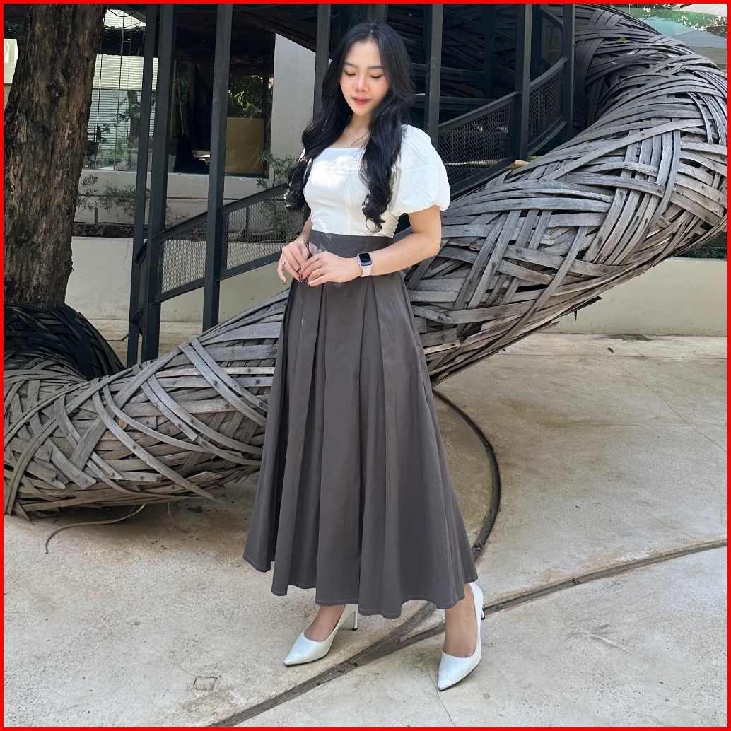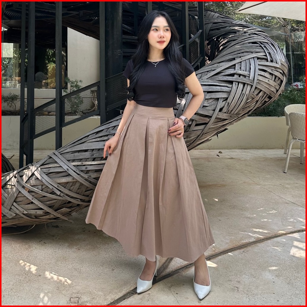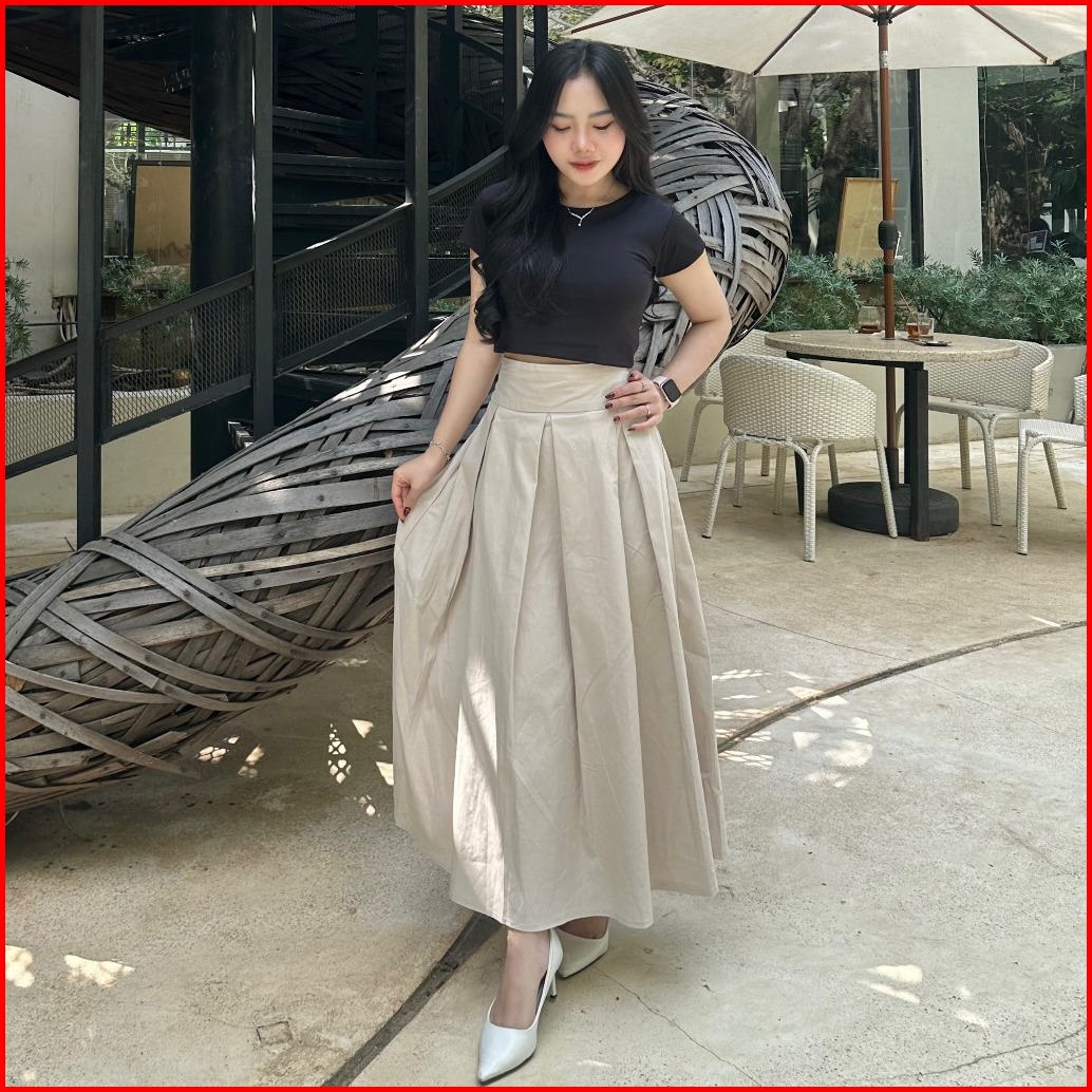 24kouture - Lena Rok Skirt Polos Twill Combed - Rok Korean Style - Rok Rempel Polos Panjang Wanita