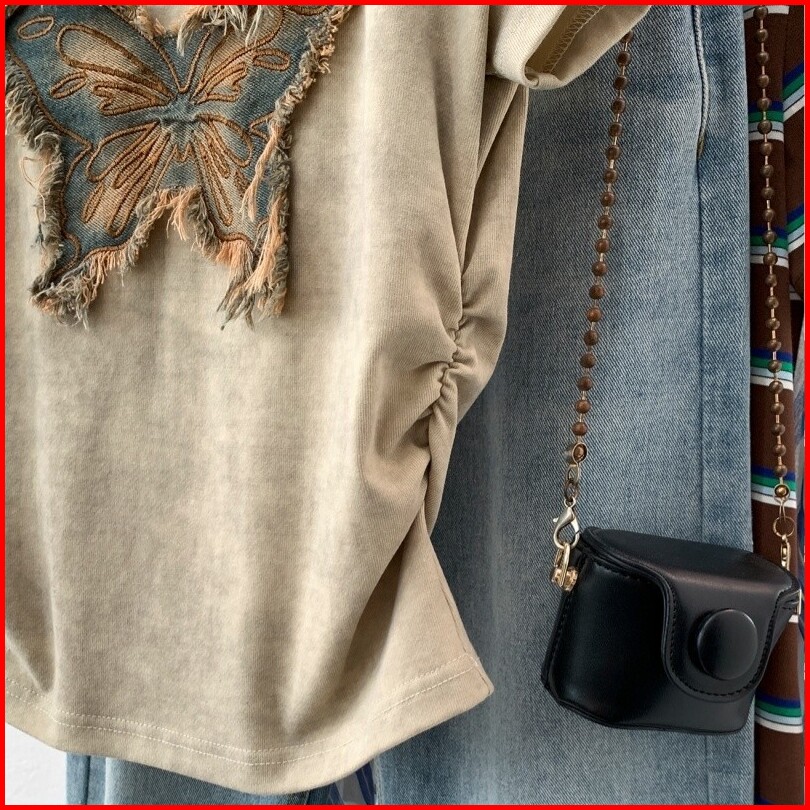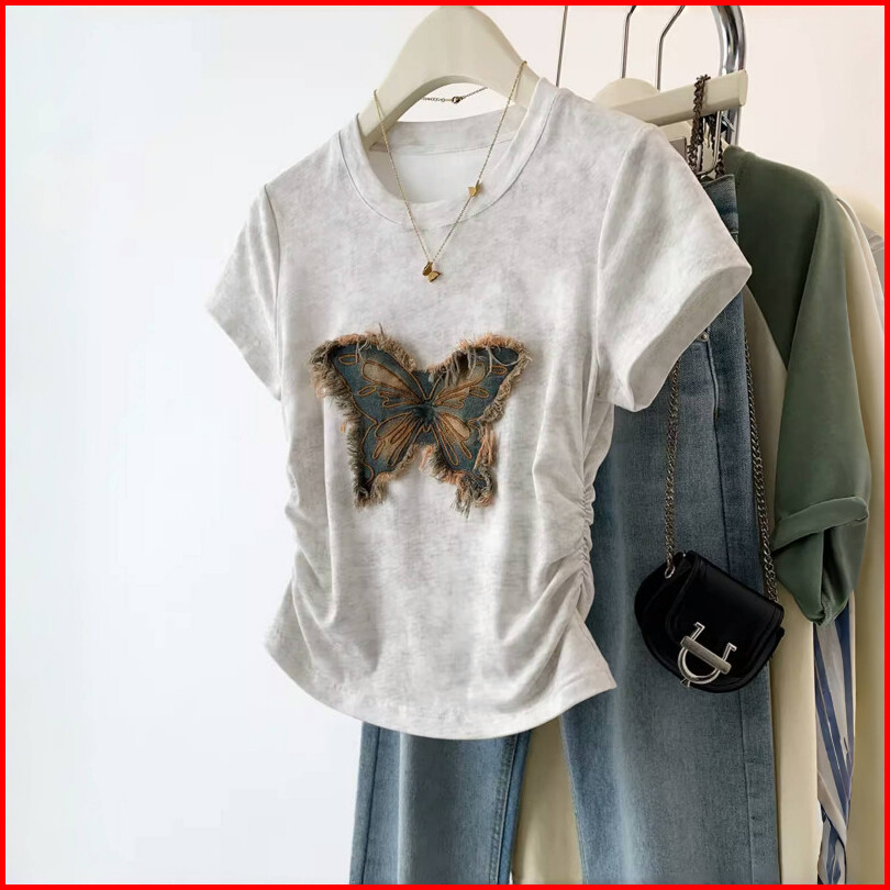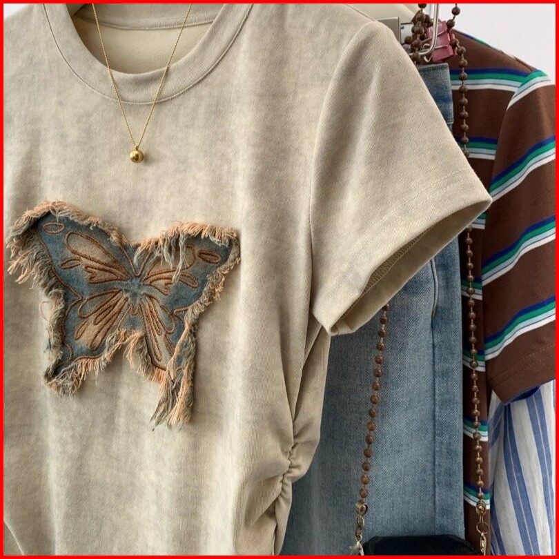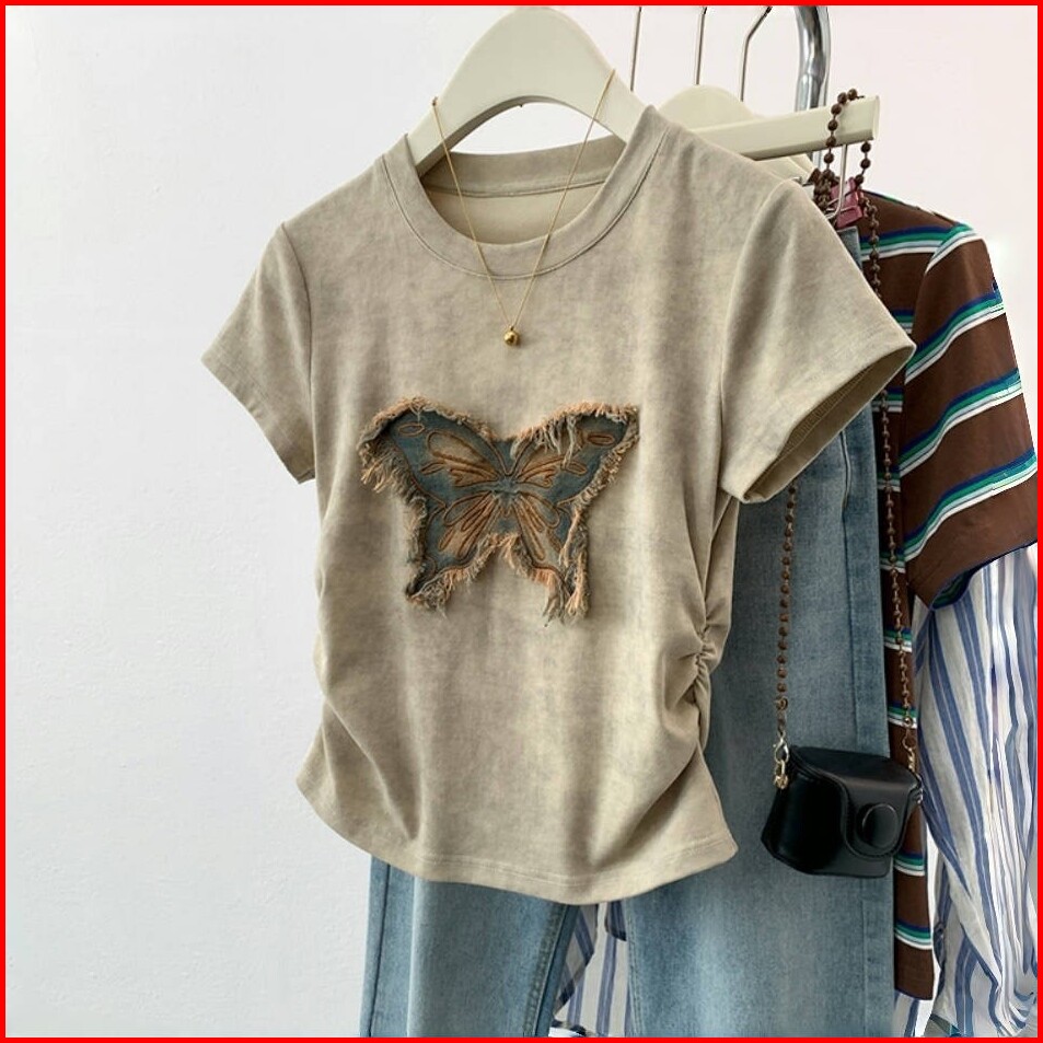 Kaos Patch Kupu-kupu Lengan Pendek Khaki