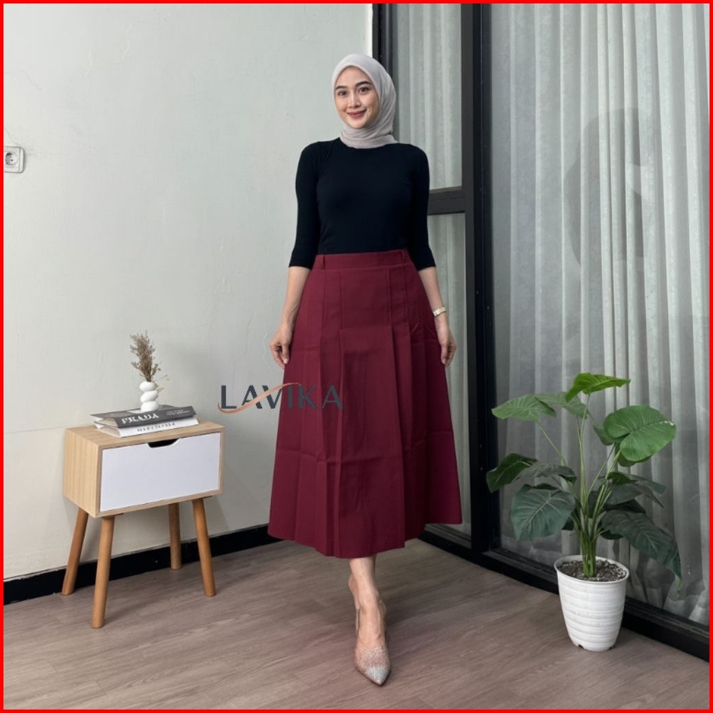 Rok Wanita Midi Korean Style - Joy Skirt Flare Terbaru - Rok Wanita Premium