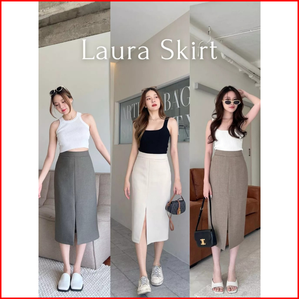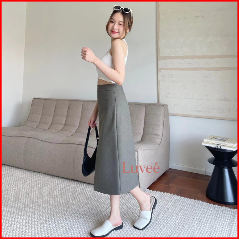 Luvee Laura Skirt Rok Span Midi High Waist Belahan Depan Rok Kerja Wanita Rok Kantor Korea Look