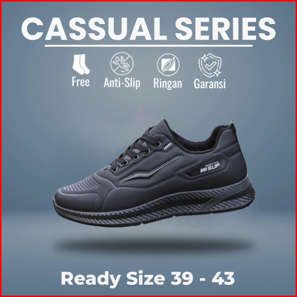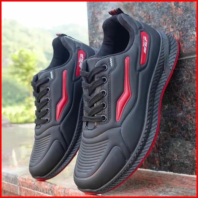 Sepatu Sneakers Sekolah Model Sport Warna Hitam Pria Bisa Buat Running Gym Kasual Ringan Anti Slip Nyaman Dipakai Harian