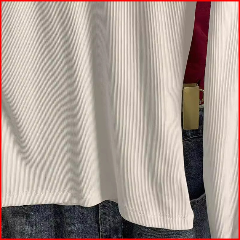Kaos V-neck Bordir Lengan Panjang Berwarna Merah