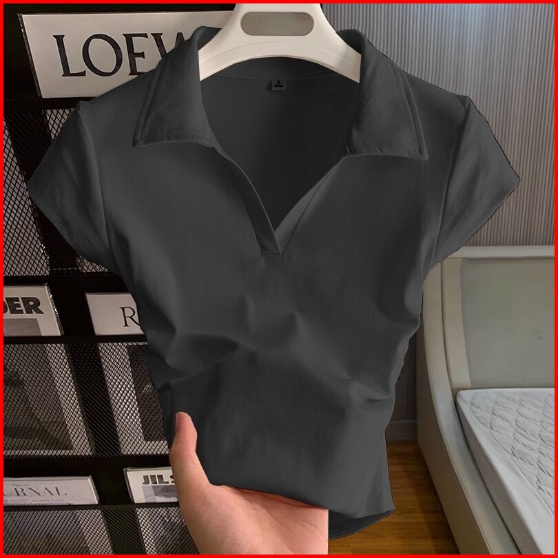 Kaos Lengan Pendek Berkerah Polo Abu Bunga
