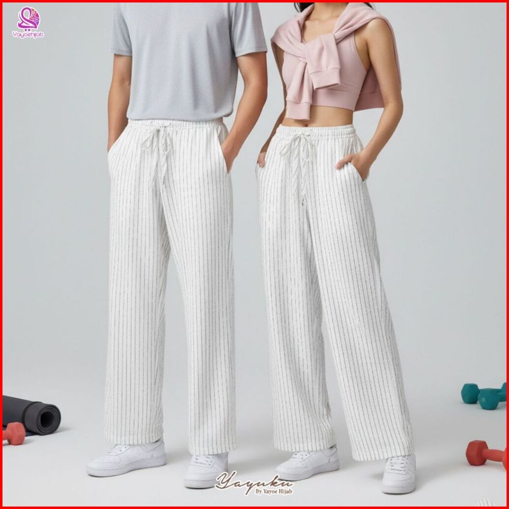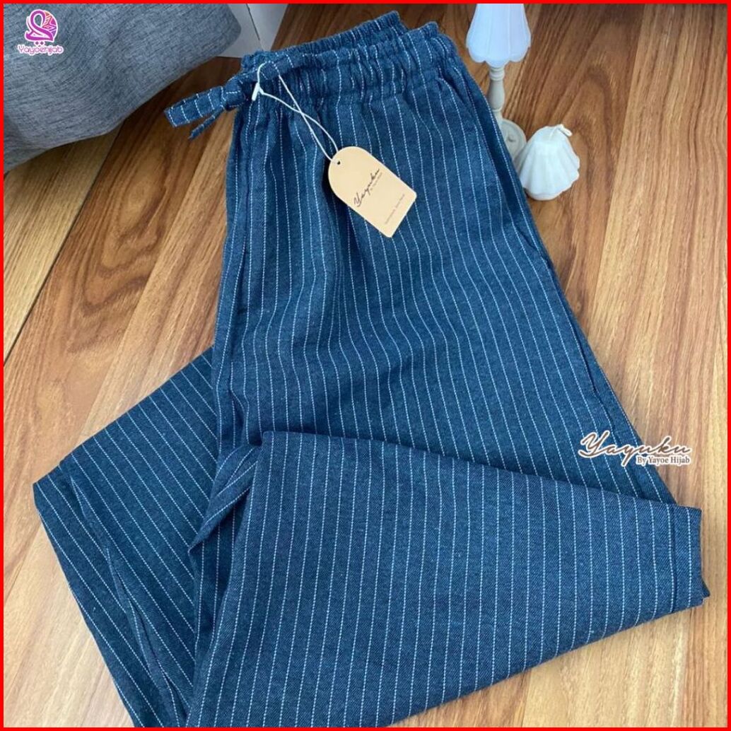 Yuka Celana Kulot Panjang Motif Garis Modis Cocok Untuk Hangout Rumah Casual Look Simple Elegan Bisa Untuk Ootd Y