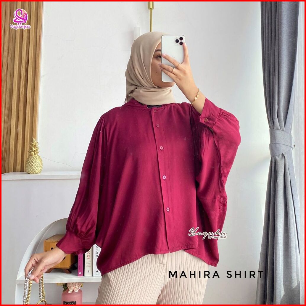 Mahira Shirt Kemeja Batwing Polos Atasan Wanita Blouse Rayon Twill Kekinian Yayuku