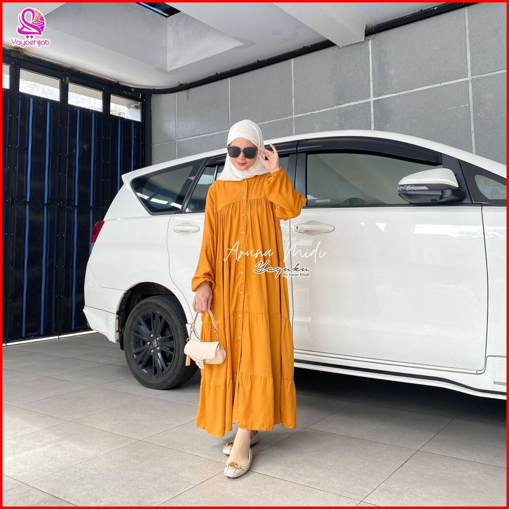 Aruna Midi Dress Bahan Rayon Twill Fashion Muslim Polos Yayuku By Yayoe Hijab