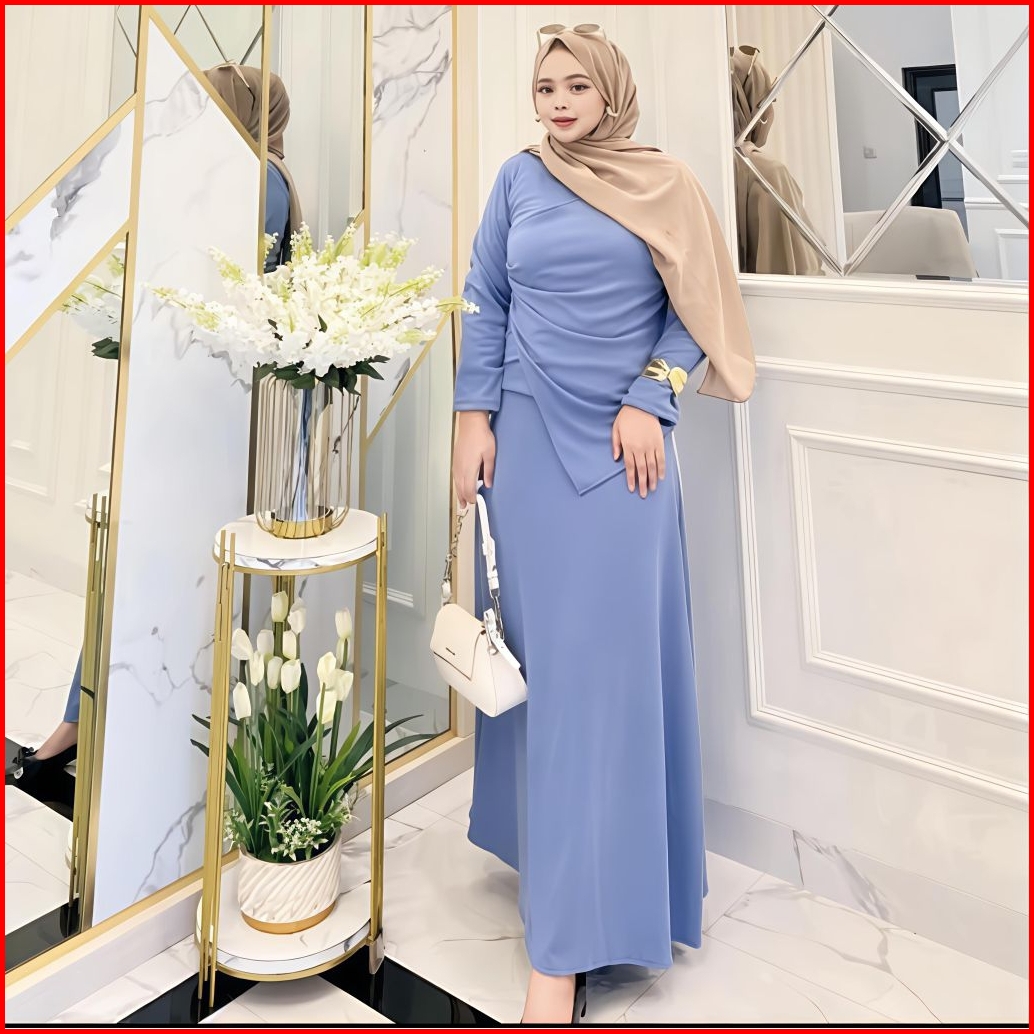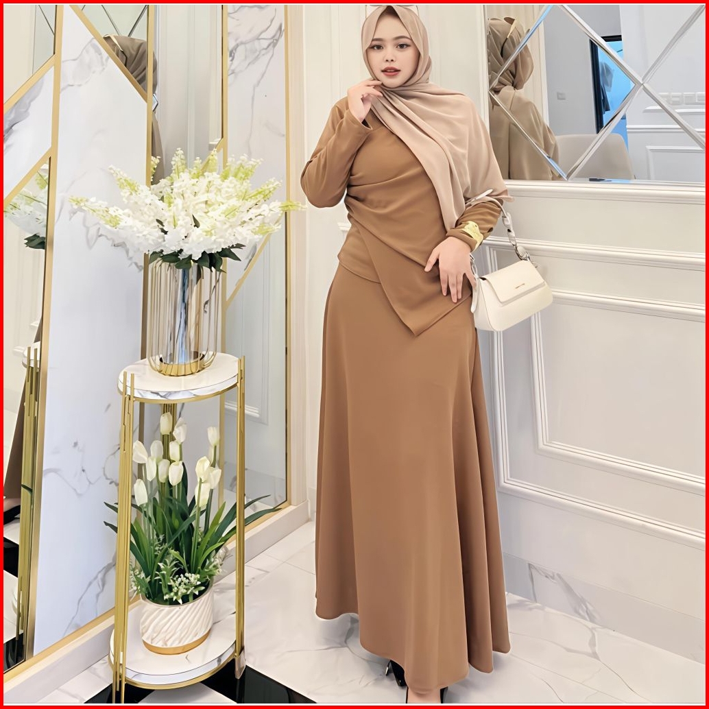 One Set Wanita Abelia Set Rok Setelan Wanita Knit Rib Premium Baju Setelan Wanita Set Hijat Wanita
