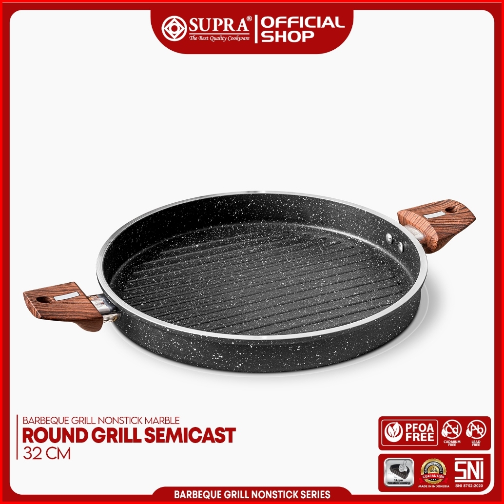 Supra Panggangan Bbq Anti Lengket Semicast Round Grill 32 Cm - Black Marble