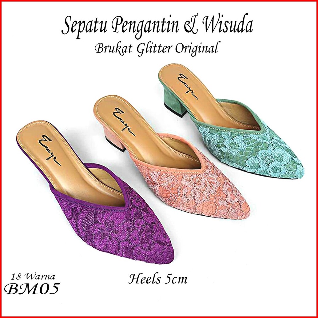 Bm05 Sepatu Bustong Pesta Brukat Heels 5cm Sepatu Pesta Wanita Sepatu Wedding Wedding Shoes