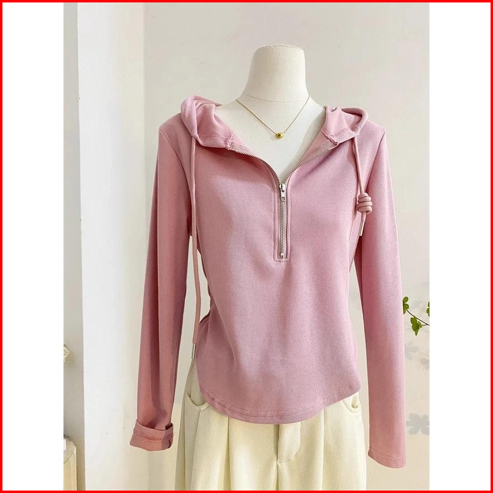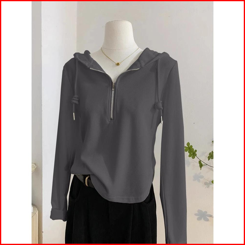 Atasan Berkerudung Lengan Panjang Ramping Serbaguna Putih Sederhana Untuk Wanita Versi Berkualitas Tinggi