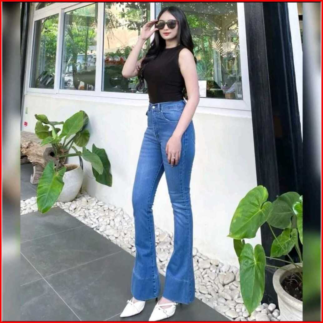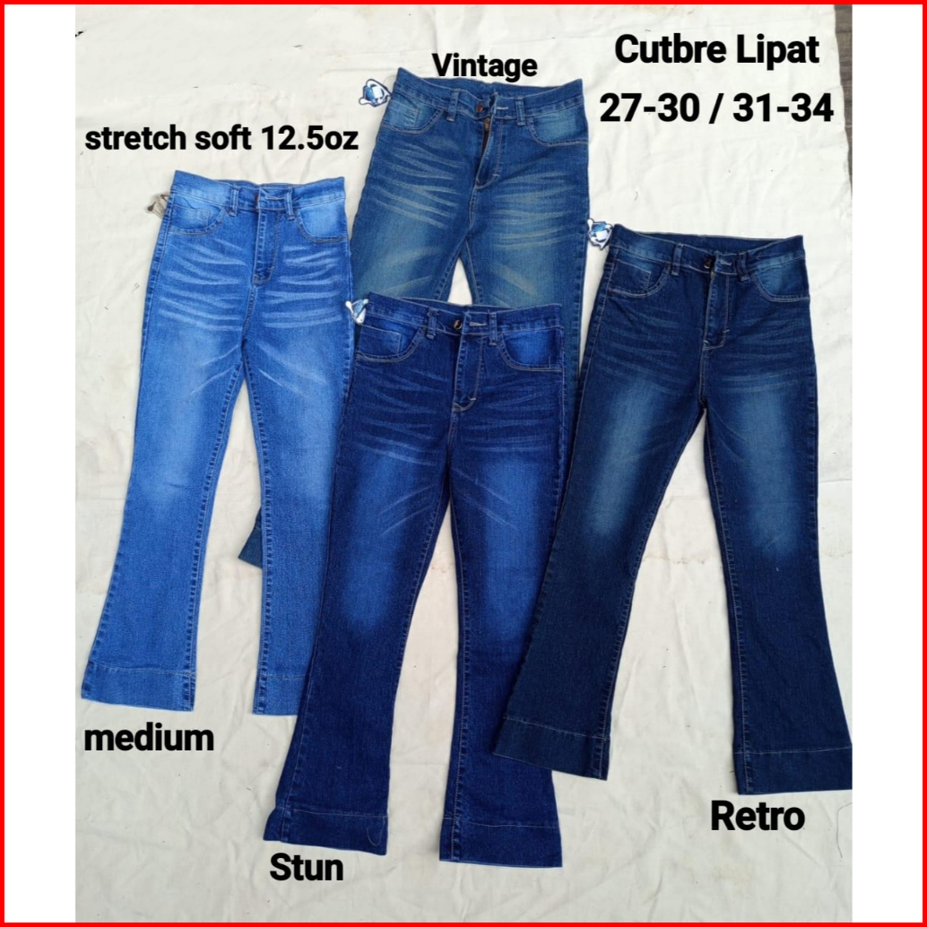 Highwaist Cutbray Jeans Wanita Lipat Lebar - Celana Cutbray Strecht Kekinian - Cutbray Flared