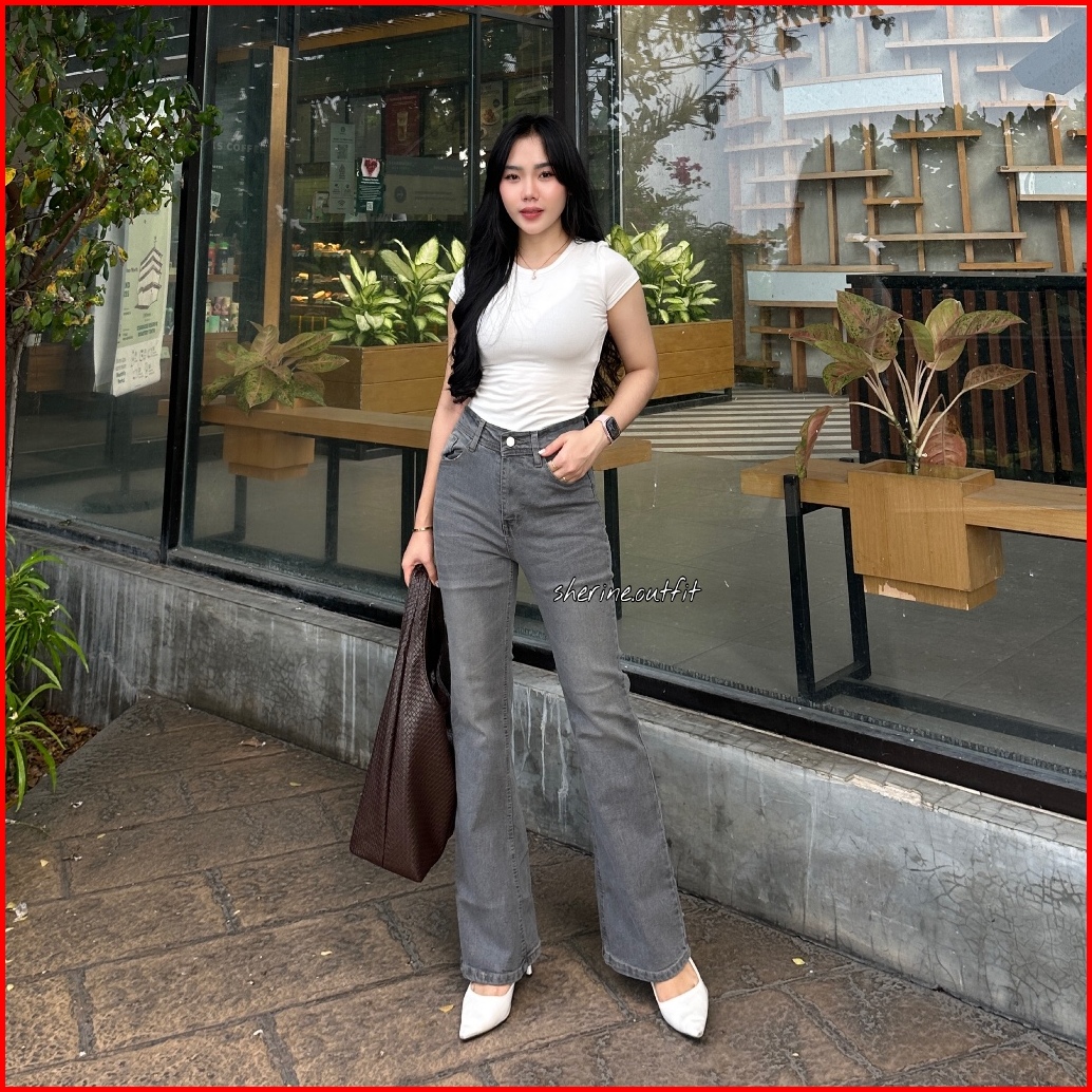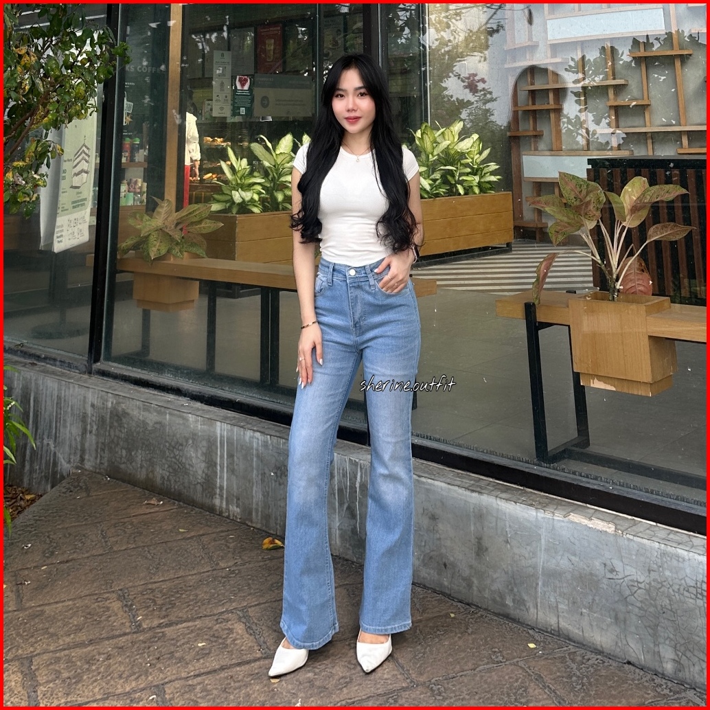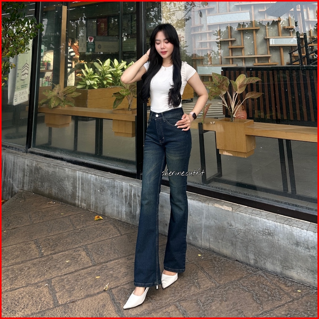Highwaist Cutbray Jeans Retro - Celana Jeans Cutbray Premium Sherine.outfit