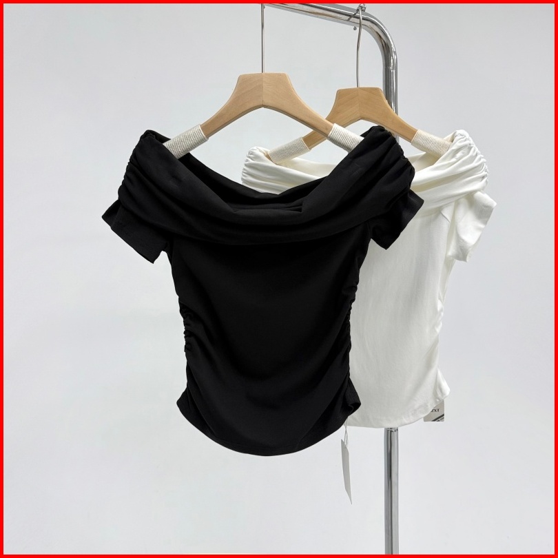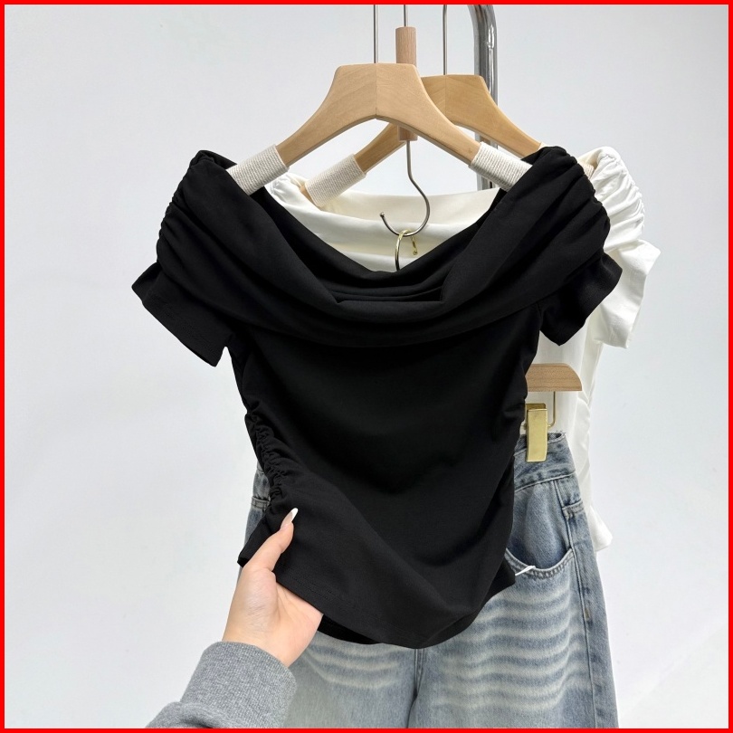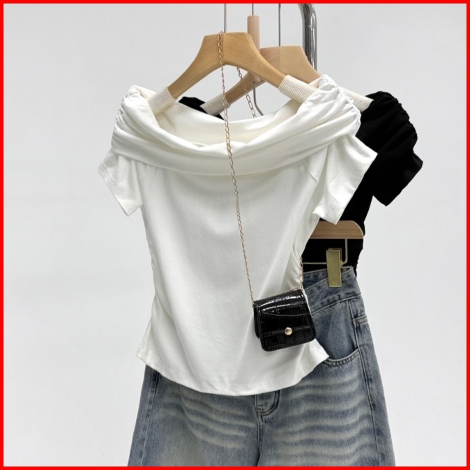 Kaos Putih Satu Bahu Lengan Pendek Desain Elastis