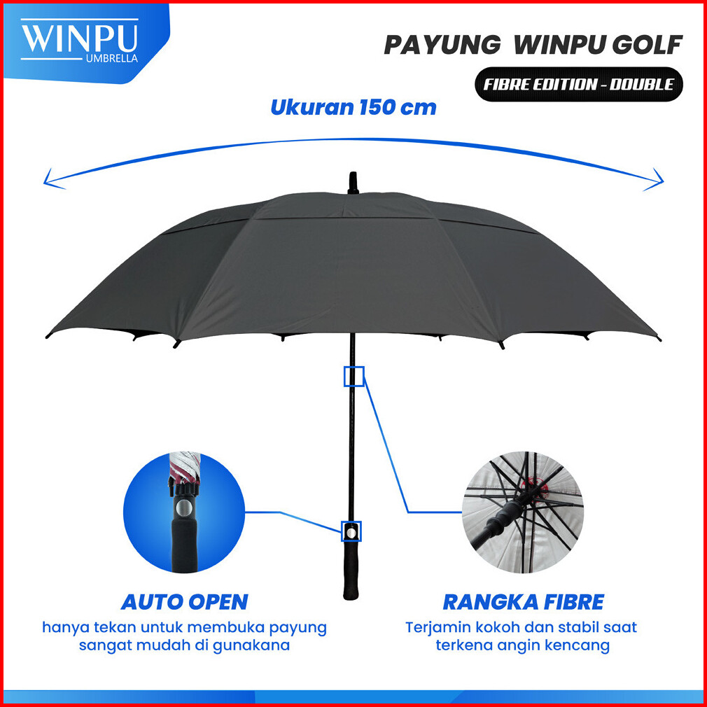 Winpu Payung Jumbo Golf Besar Susun Palsu