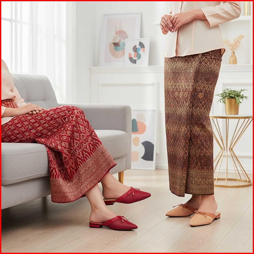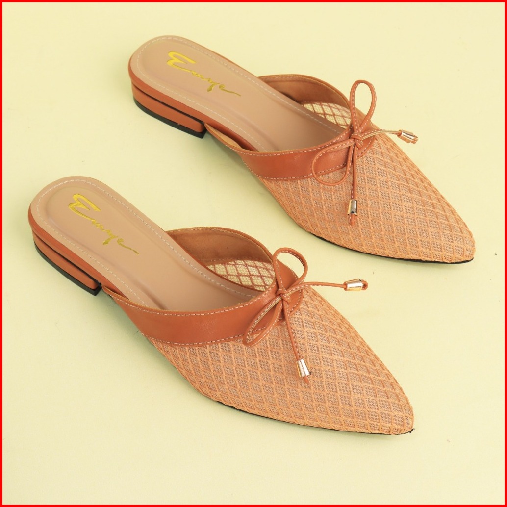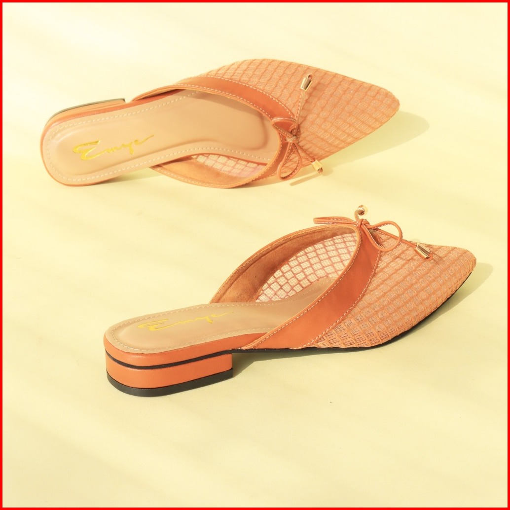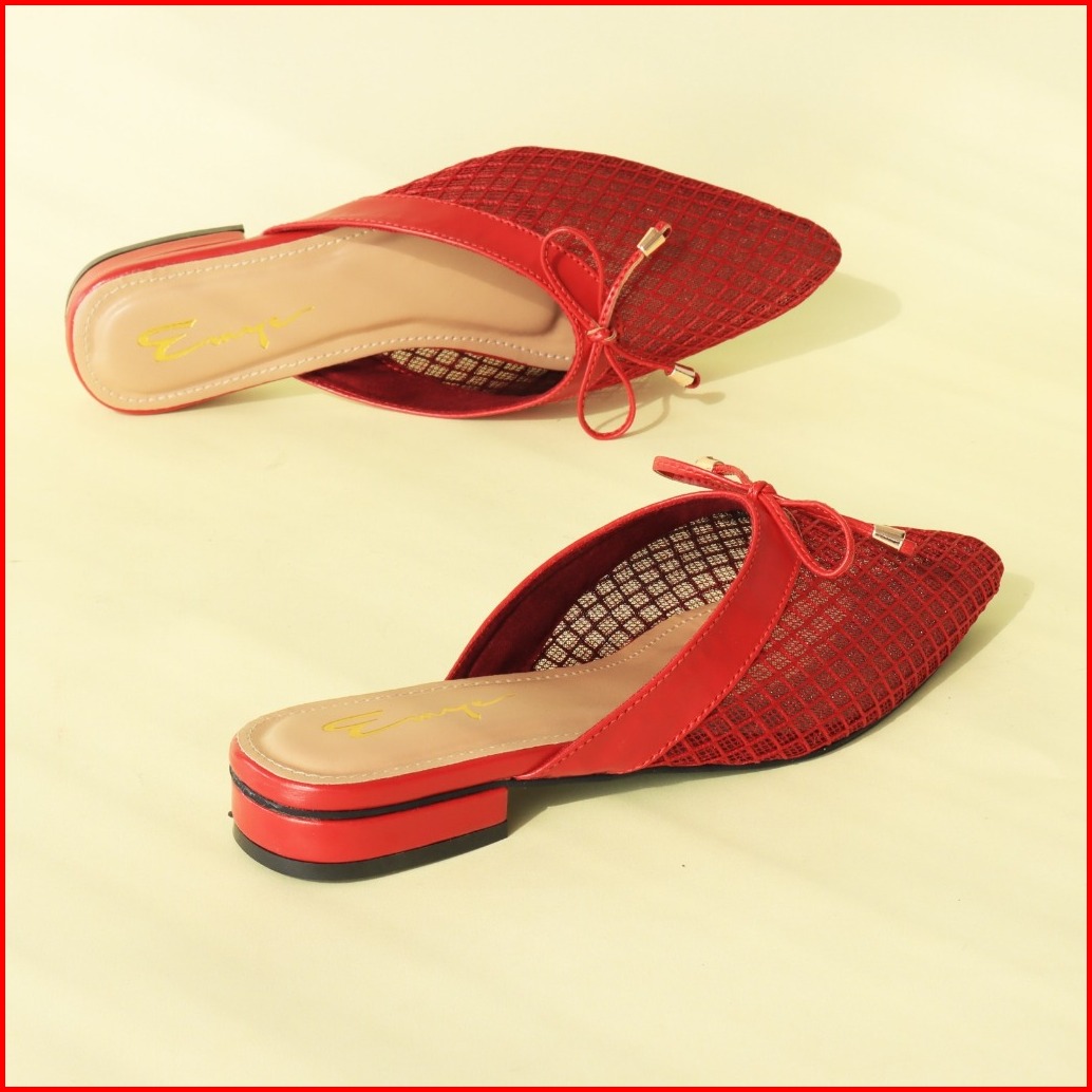Emye - Slop Pesta Wanita Kondangan Flat 1cm Berukat Jala Pita Original
