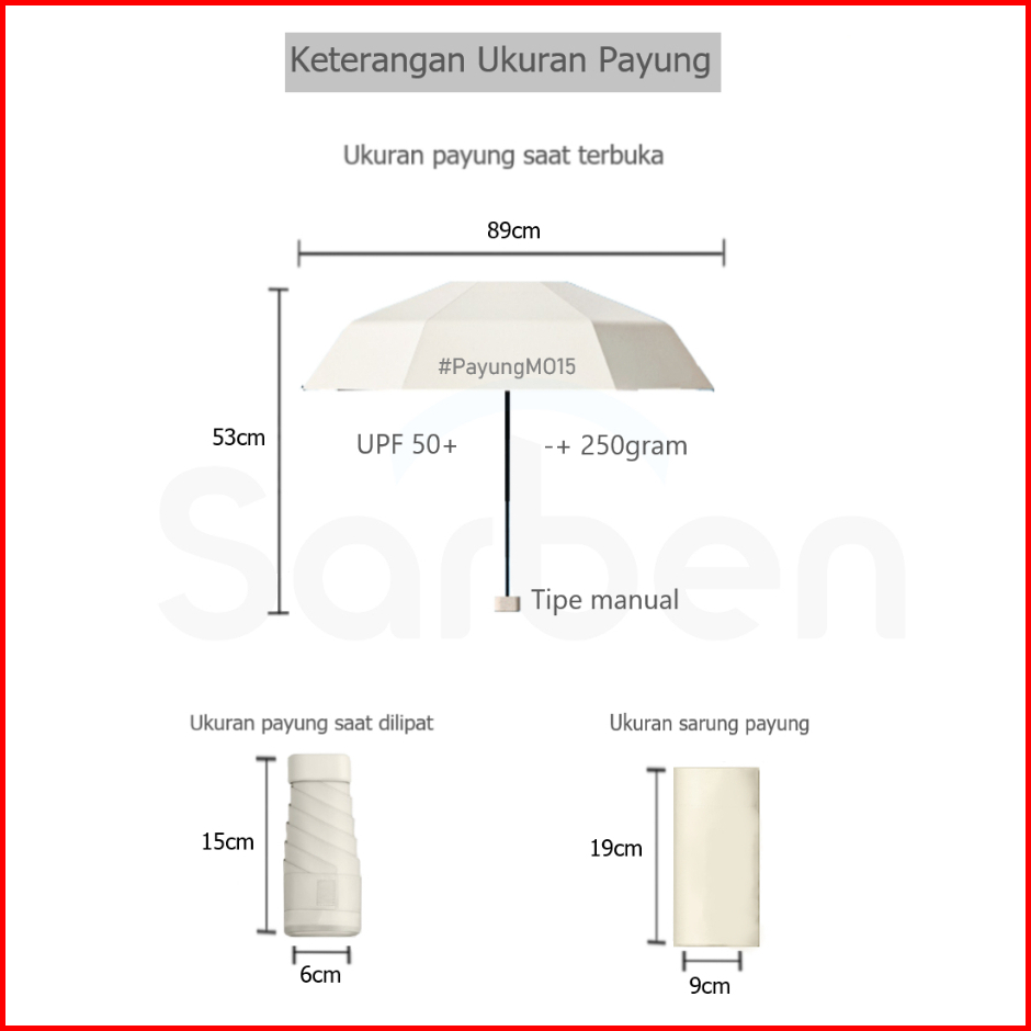 Sarben - Payung Lipat - Super Mini 15 Cm - Multifungsi - Tahan Uv Upf 50 Tahan Hujan