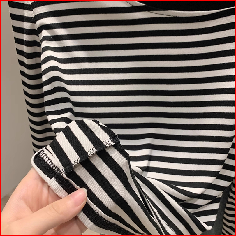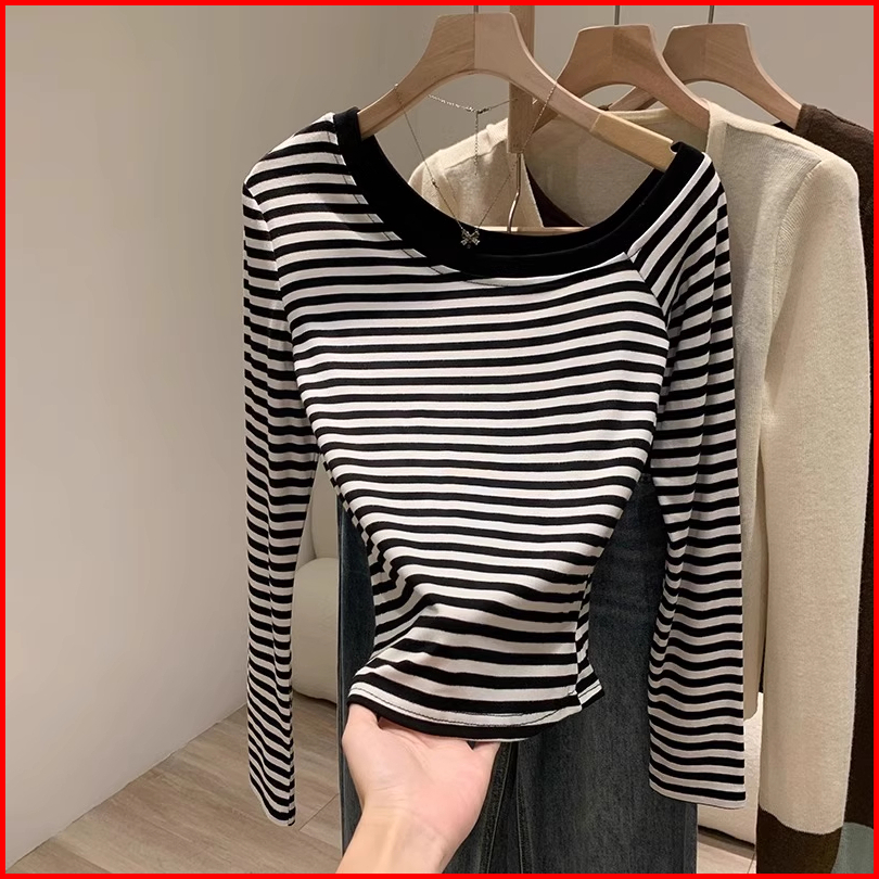 Kaos Bahu Terbuka Lengan Panjang Premium Bergaris Hitam