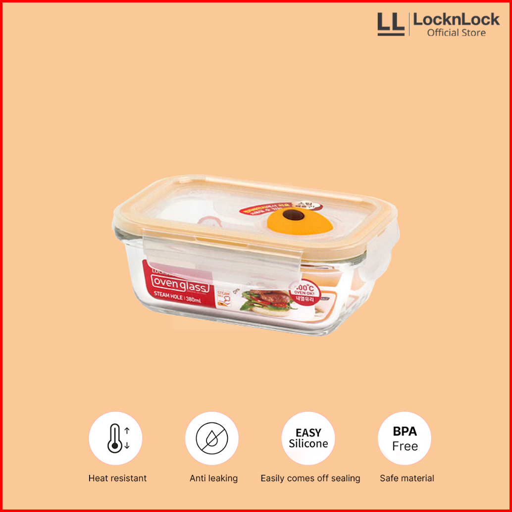 Locknlock Oven Glass Wadah Makan Rectangular With Steam Hole 380ml - Llg422t