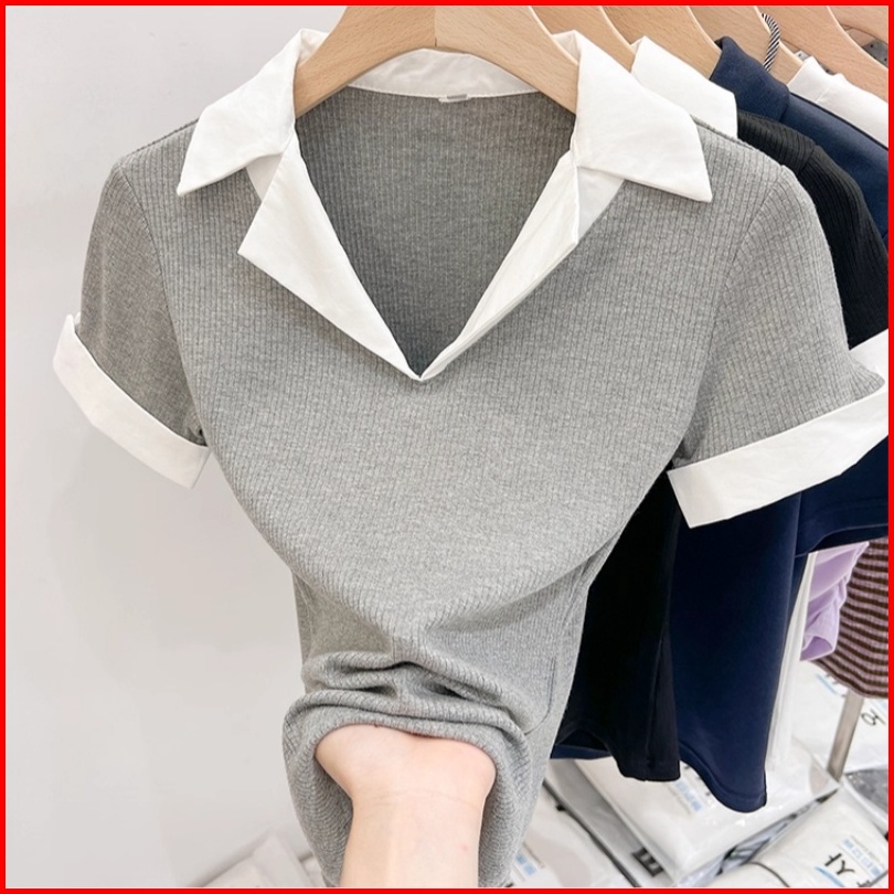 Kaos Polo Abu-abu Lengan Pendek Dengan Kerah Polo Dan Kontras Berkualitas Tinggi