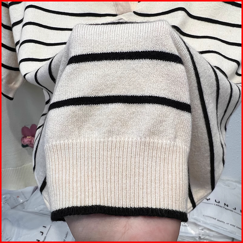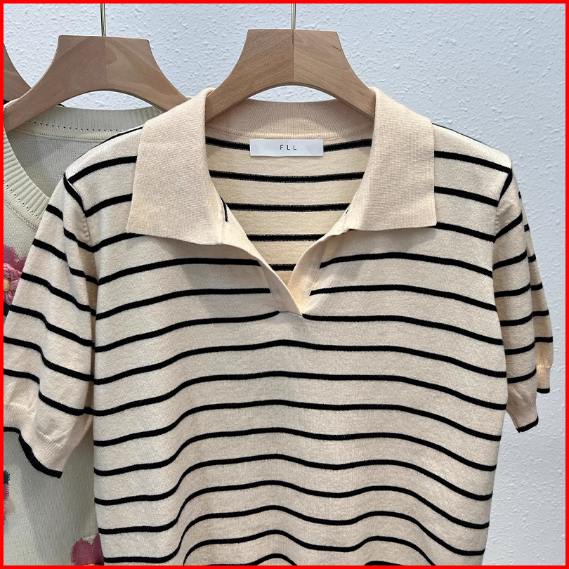Kaos Polo Rajut Bergaris Lengan Pendek Motif Aprikot