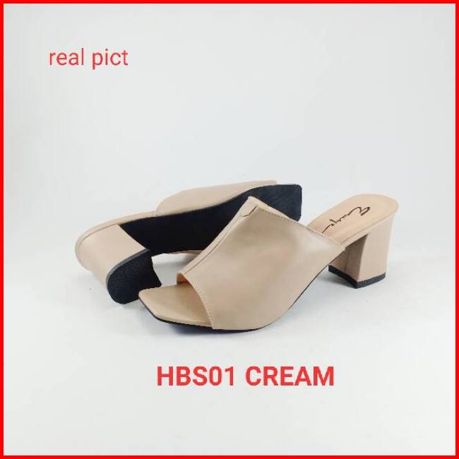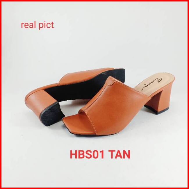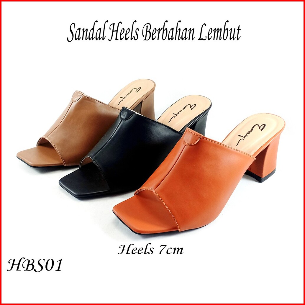 Emye - Sandal Heels Wanita 7cm Kulit Sintetis 36-40 Varian 4 Warna Hitam Milo Hbs01