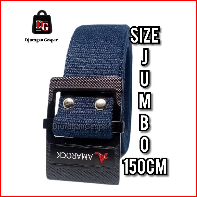 Gesper Jumbo 150cm Ikat Pinggang Pria Dan Wanita Sabuk Katun Polos Model Kepala Geser Hitam Tebal