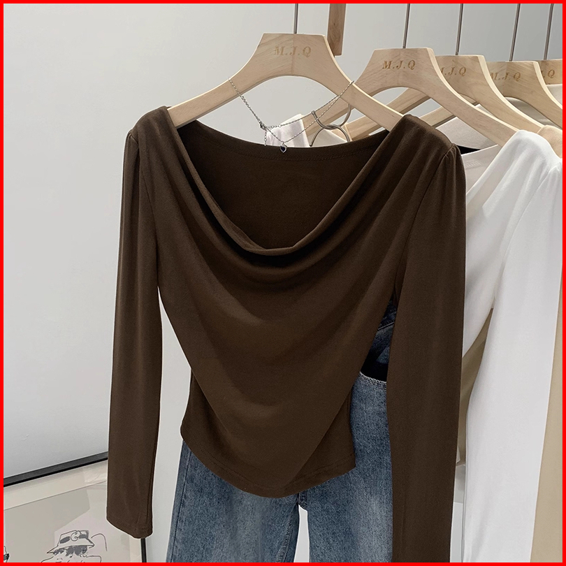 Kaos Oblong Aprikot Lengan Panjang Satu Bahu