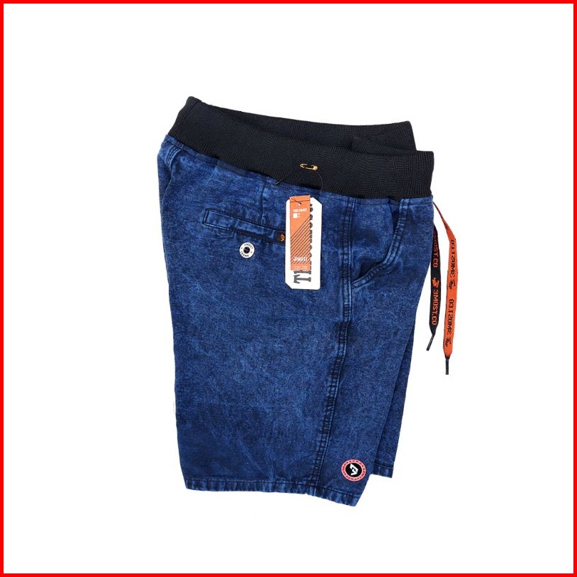 Threemost - Celana Pendek Rib Denim Washing Snow Premium Pingang Karet 29-34