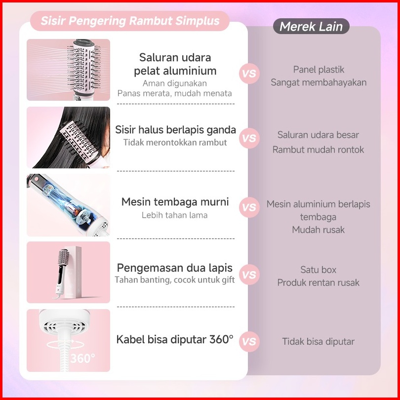 Simpluspink Hair Dryer Brush Dry Wet 4-in-1 Catokan Rambut Styling Brush